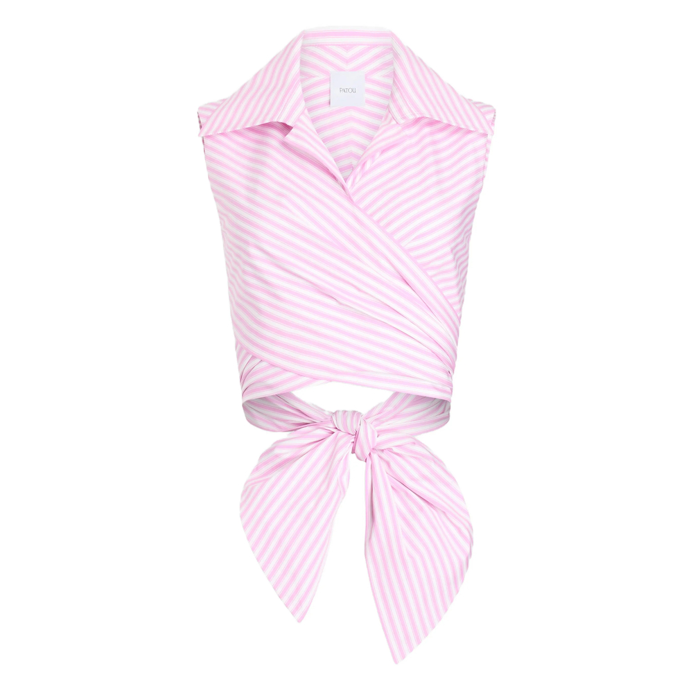 pink and white striped design collar wrap detail tie detail sleeveless