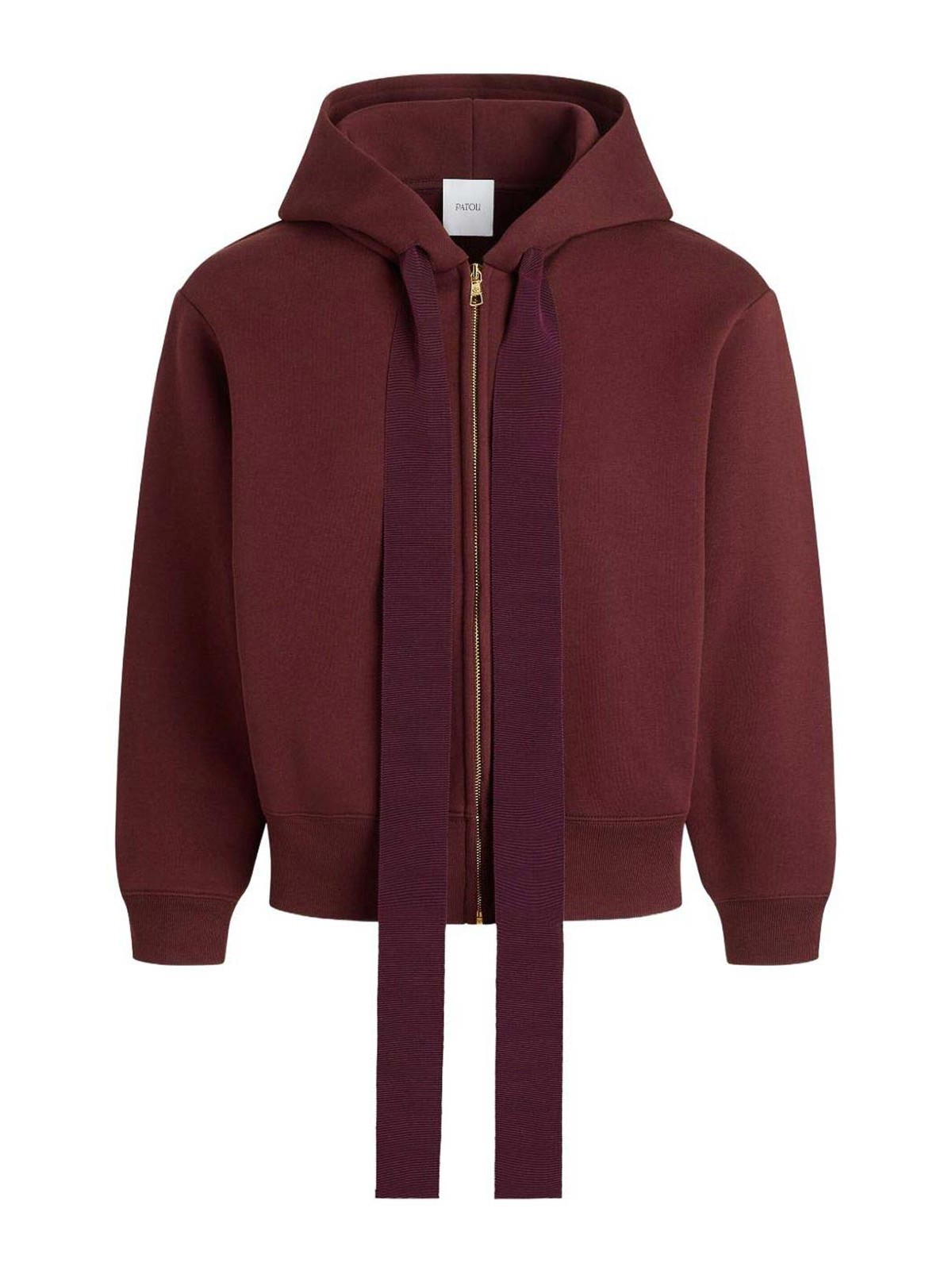 Capuche zippée en polaire bordeaux avec cordon de serrage, logo brodé, manches longues