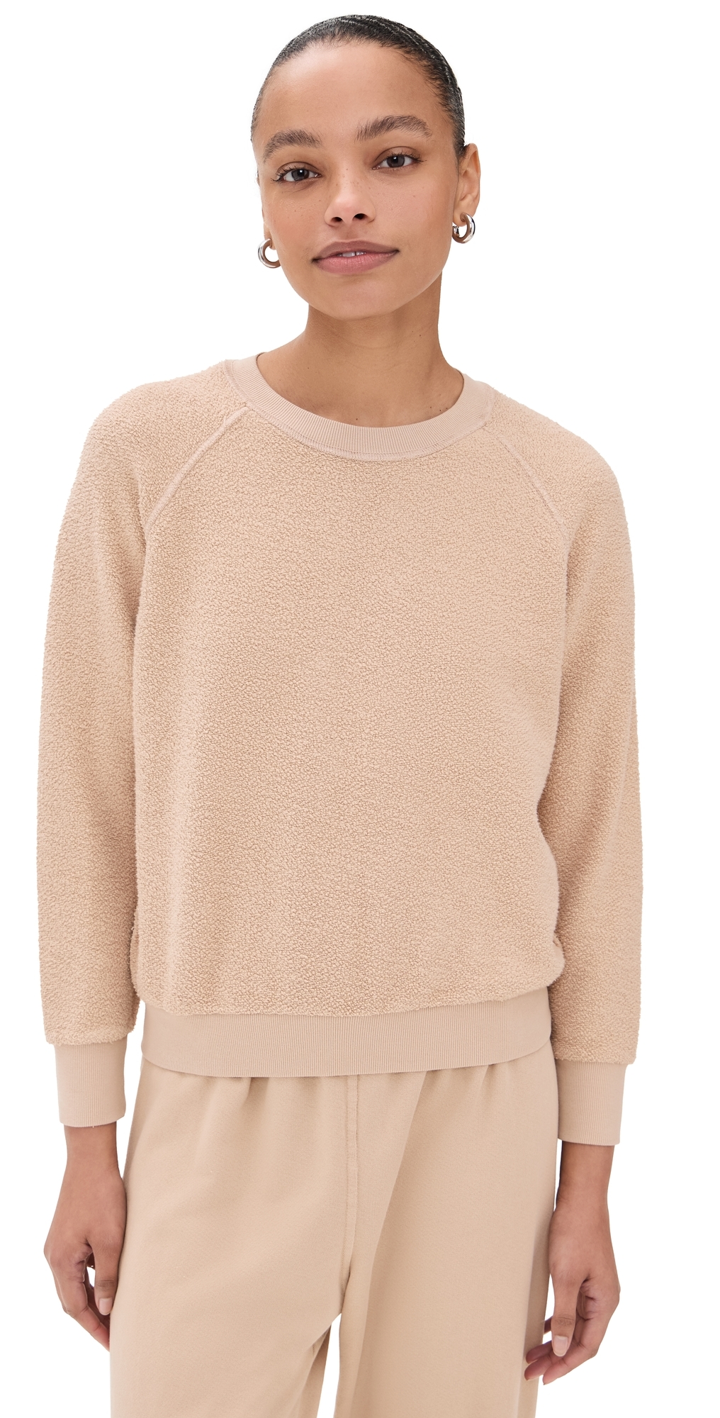 Inside Out Fleece Long Sleeve Shrunken Crewneck Sweatshirt Sand Dune