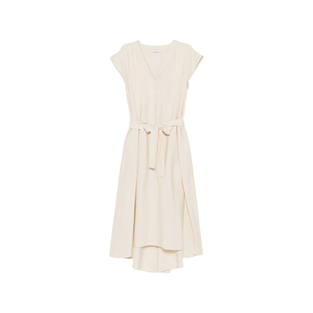 V-neck Belted-waist Midi Dress