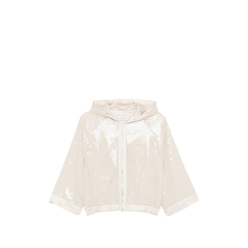 light cream sequin embellishment zip fastening hooded elasticated hem