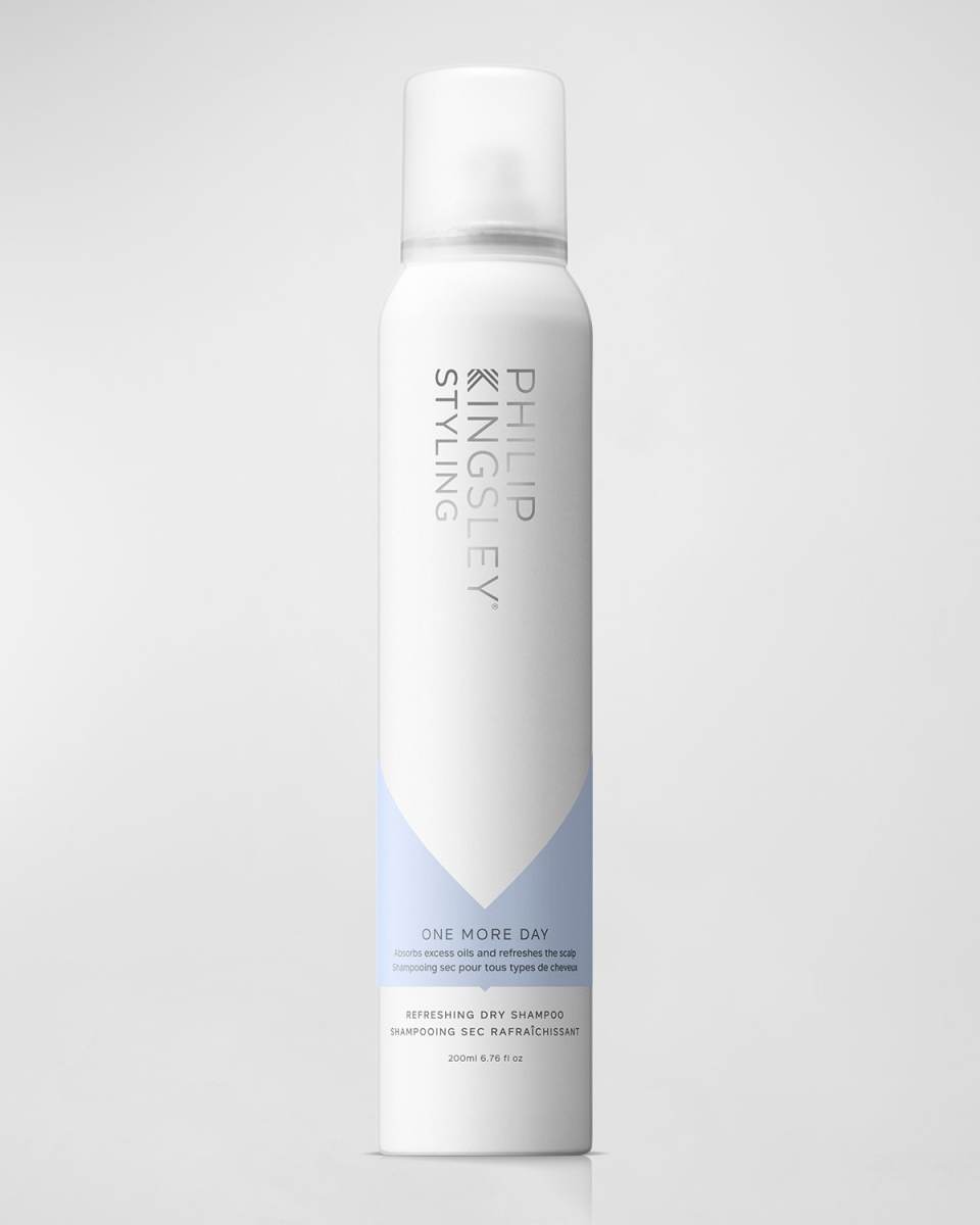 One More Day Refreshing Dry Shampoo absorbs excess oils, sweat and odour, refreshing your hair and scalp between washes. Our soothing formula adds residuefree volume and texture for hair that looks, feels and smells clean. Part of the Styling Range it refreshes and soothes the scalp absorbing excess oils.Shake well before use. Keep nozzle 30cm from the hair and spray onto roots. Leave for ten seconds and massage into scalp and hair. Brush and follow with Philip Kingsley styling products as required.6.8 oz./ 200