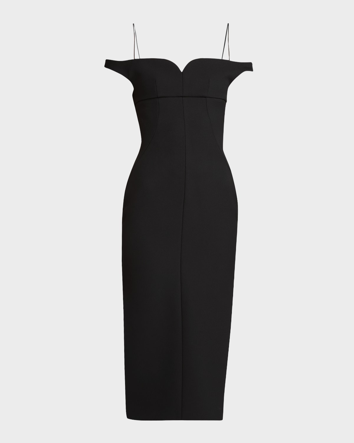 Philosophy di Lorenzo Serafini dress featuring princess darts, an empire waist, and thin spaghetti straps Offtheshoulder neckline Sleeveless Bodyskimming silhouette Hem falls below the knee Centerback slit hem Invisible side zip Nylon/polyamide/elastane Made in Hungary