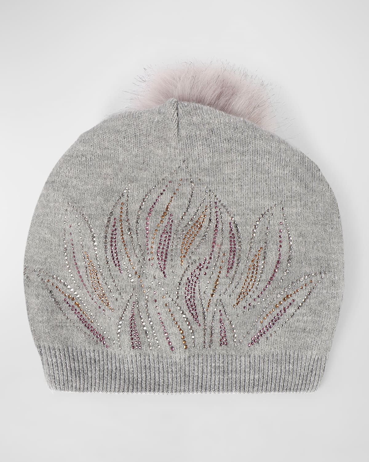 Pia Rossini "Laurie" knit beanie decorated with multicolor sequins Faux faur (polyester) pompom Ribbed edge Acrylic/Amni® nylon/polyester Wipe clean Imported
