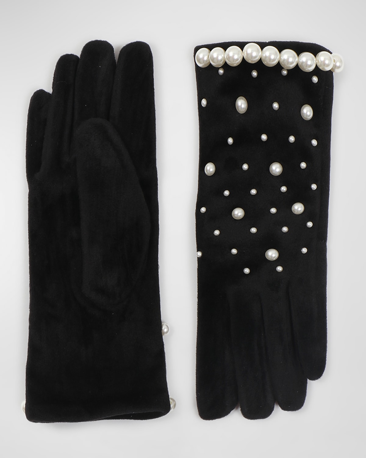 Pia Rossini "Pearla" gloves in polyester and elastane with faux pearl (plastic) embellishments Approx. 9.8"L Wipe clean Imported