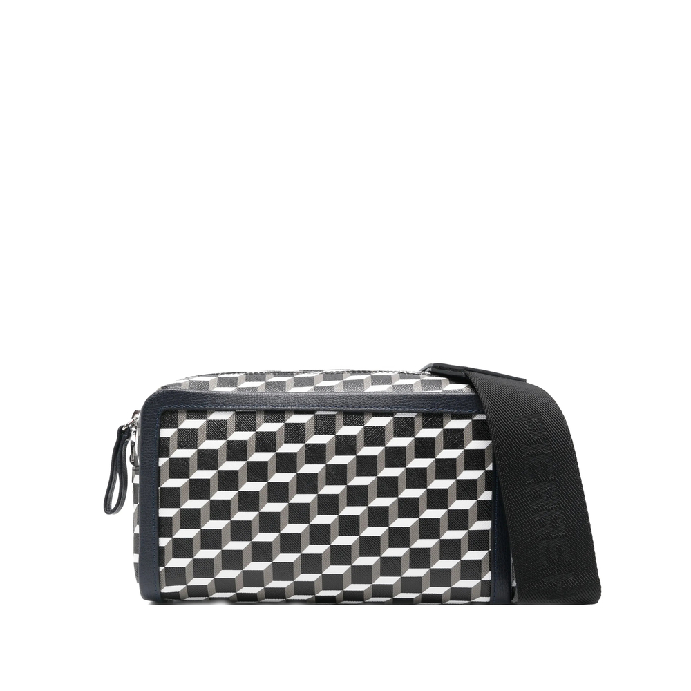 black, white, navy geometric print top zip fastening detachable shoulder strap silver-tone hardware