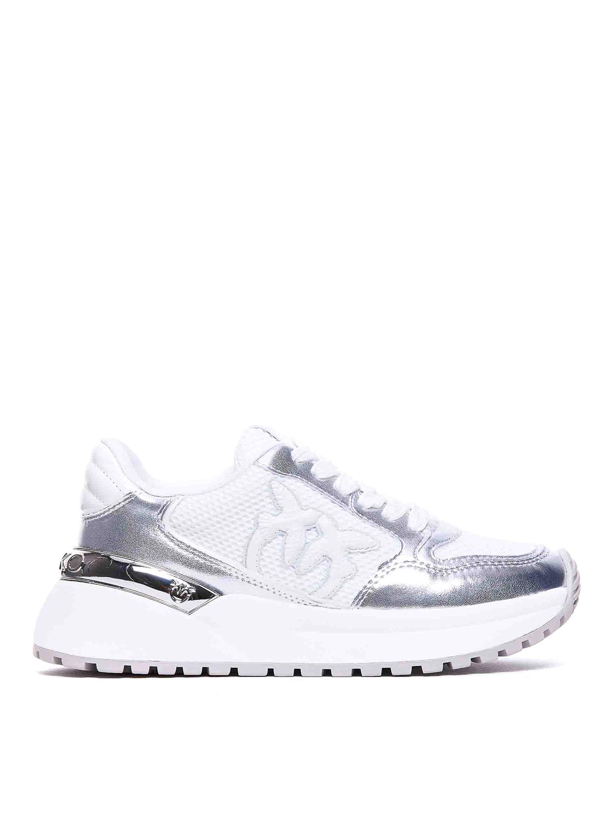 Sneakers Pinko blanches et gemmes à lacets avec logo à bout rond