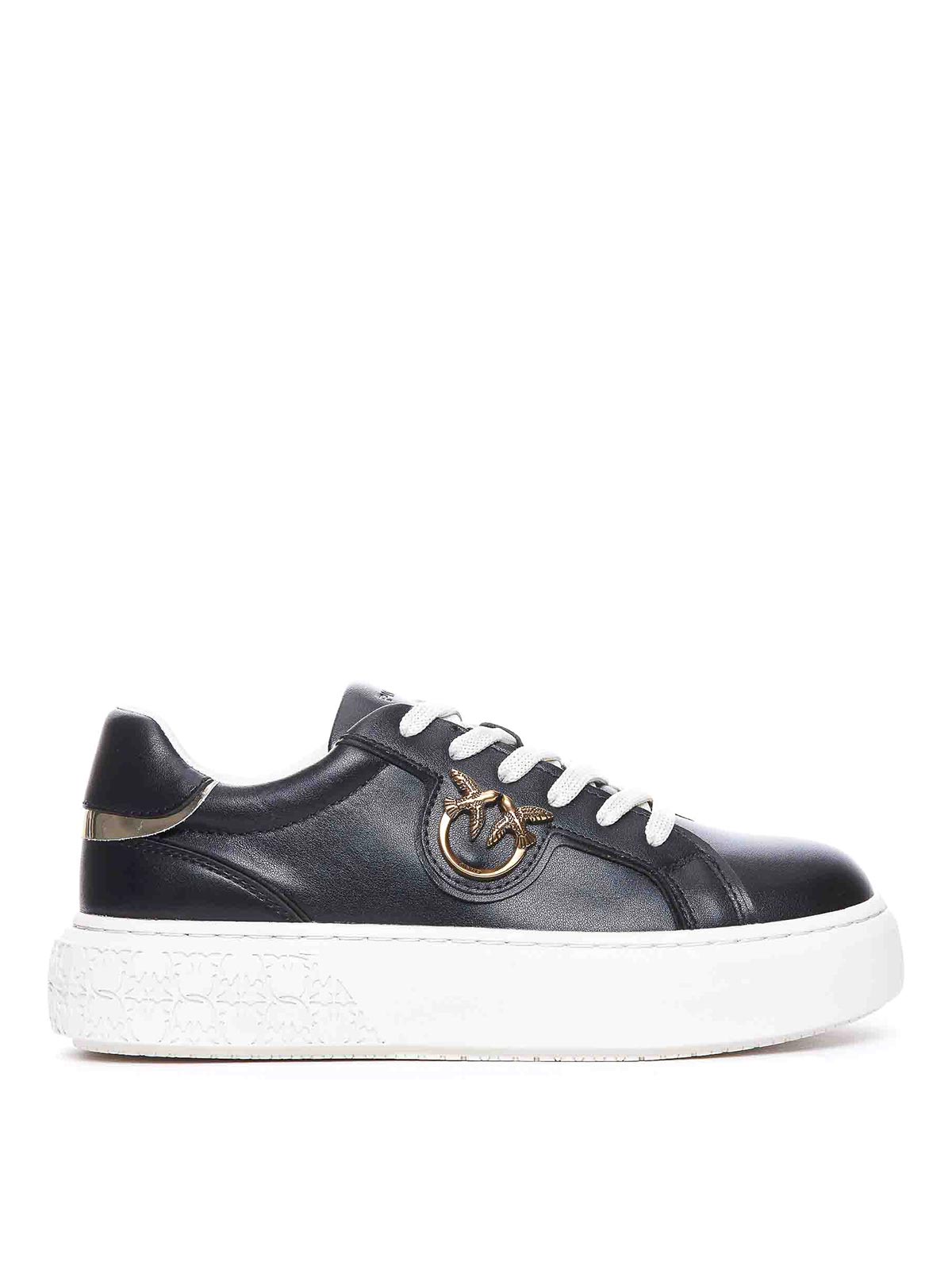 Baskets yoko noires Pinko et logo des tourtereaux à bout rond en dentelle sur le côté