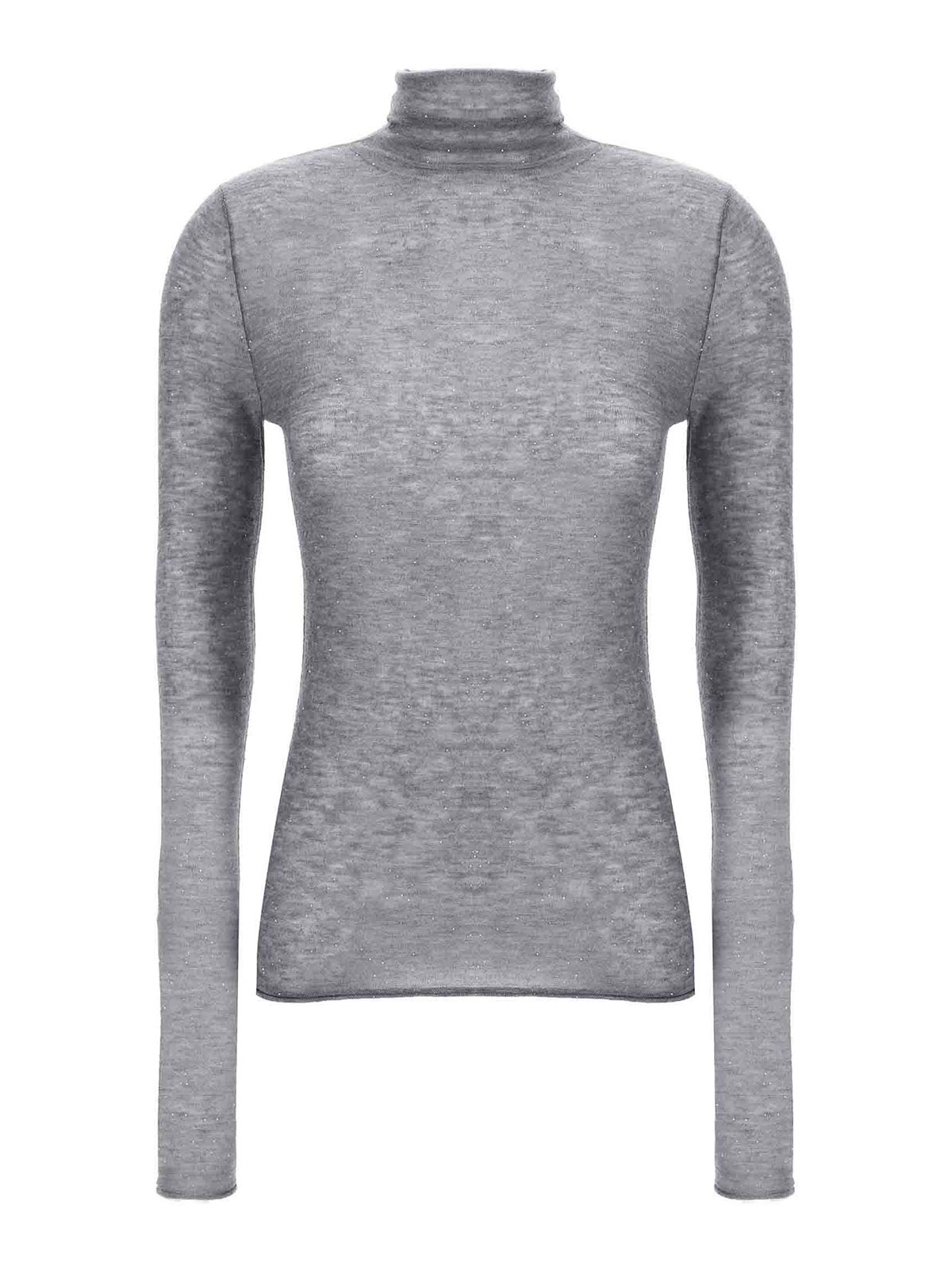 Pull « mousse » en laine ultrafine avec application de paillettes sur l'ensemble, col haut, manches longues et écusson logo ton sur ton dans le dos.