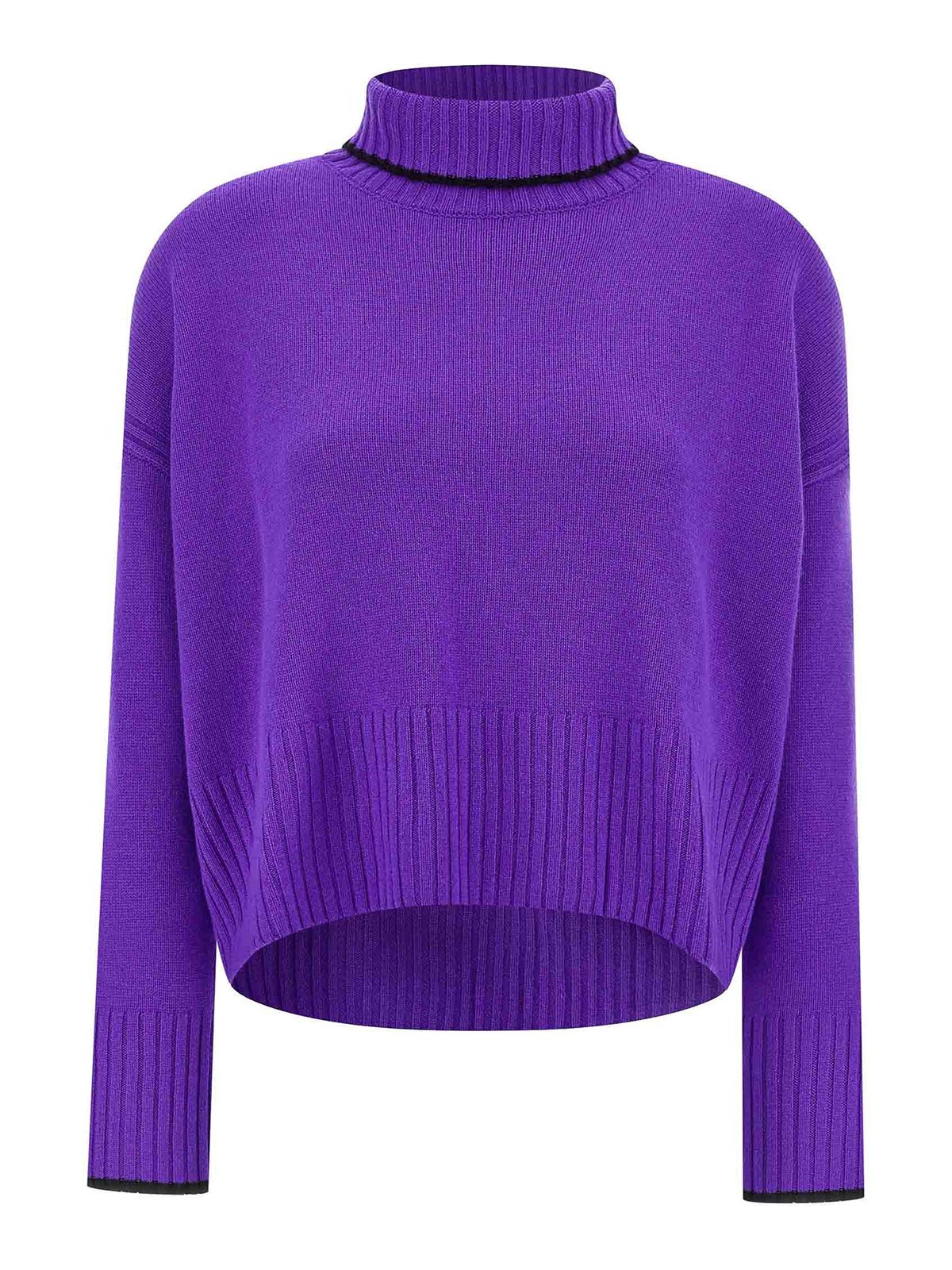 pull à col roulé « Falkland » et en mélange, col haut et dos retroussé, écusson à logo, manches longues et épaules tombantes