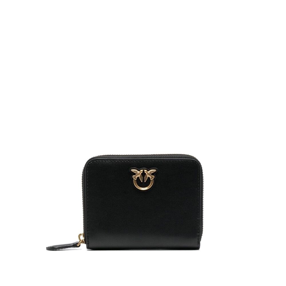black calf leather logo plaque gold-tone hardware all-around zip fastening card slots note compartment