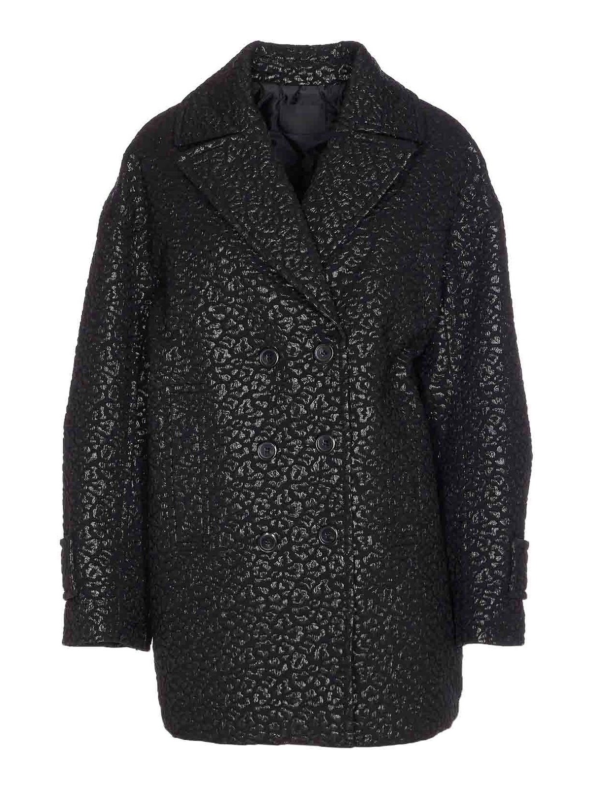 Manteau Josefa Pinko noir avec boutons à double boutonnage sur le devant, col en V, poches inversées, imprimé léopard Nom de la couleur du créateur: noir