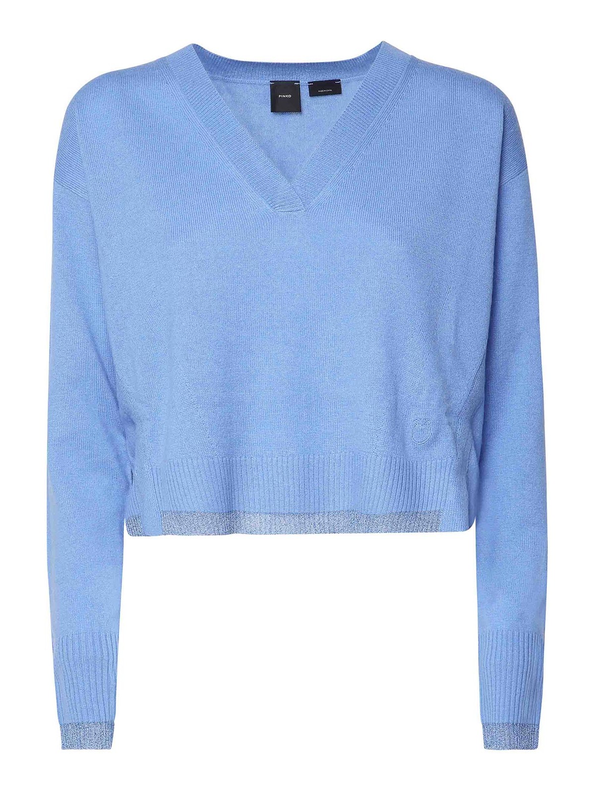 Pull en coton, col en V, coupe courte, manches longues, couleur bleu clair