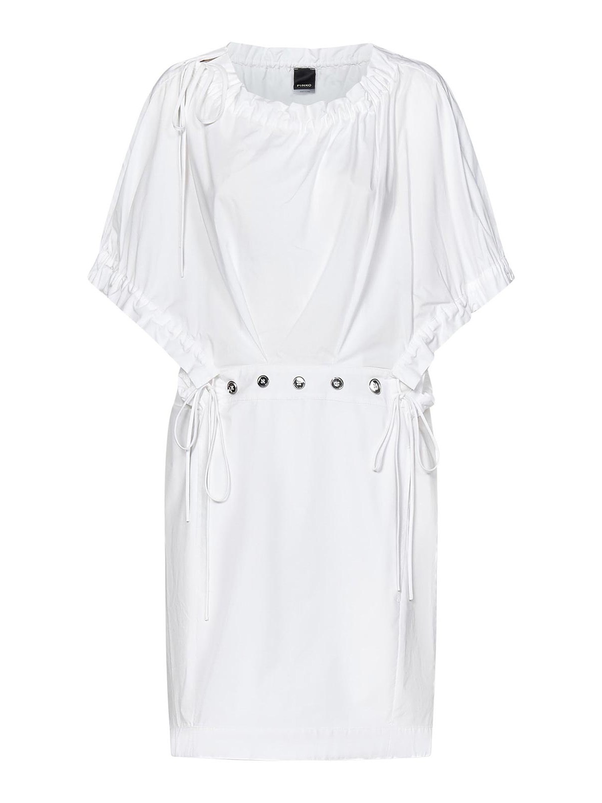 Encolure bateau froncée avec cordon de serrage ajustable, manches kimono courtes, ourlet froncé avec ceinture à cordon ajustable, effet à la taille avec boutons décoratifs, pli au dos, couleur blanche