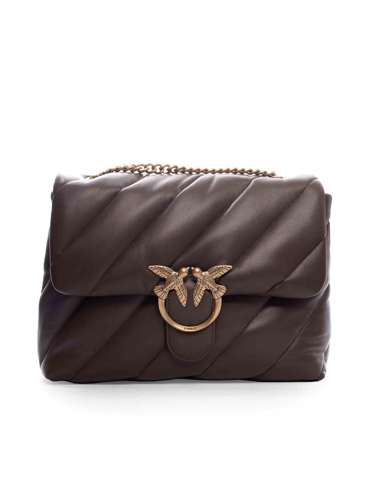 Bouton en cuir taille maxi, boucle Love Birds, bandoulière matelassée, compartiment zippé