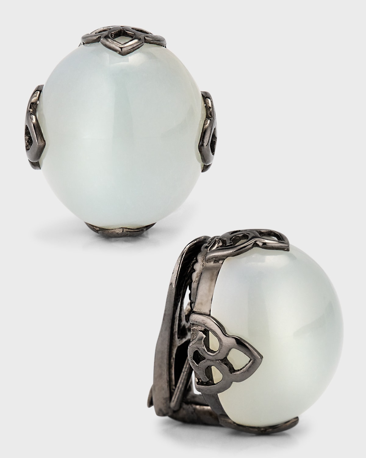 18K Black Gold Cabochon Moonstone Convertible Earrings