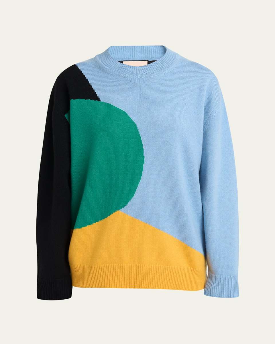 Plan C sweater fetauring abstract colorblock intarsia Crew neckline Long sleeves Loose fit Ribbed cuffs and hem Pullover style Cashmere Made in Italy
