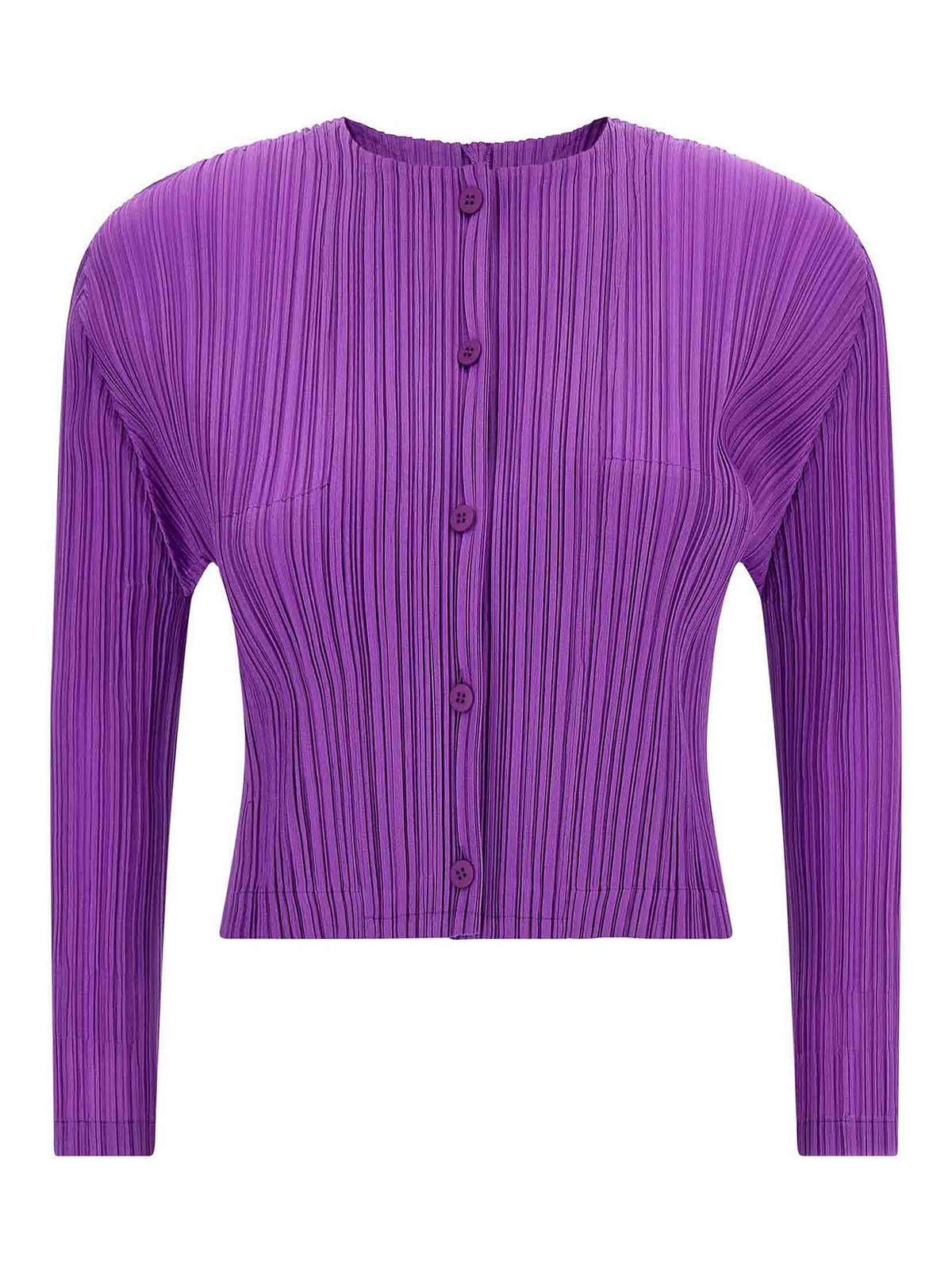 cardigan plissé d'août aux couleurs mensuelles avec encolure ronde, poches boutonnées, manches longues