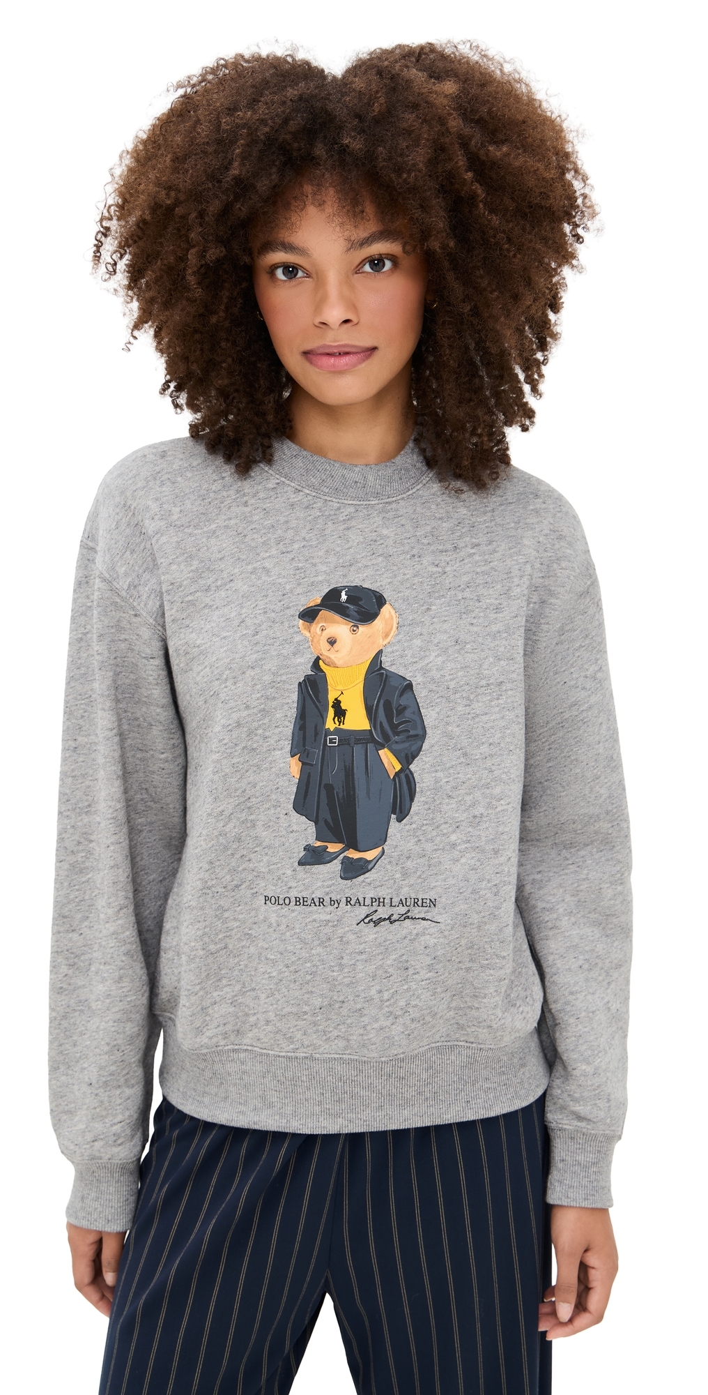 Fabric: Mid-weight stretch fleece. Polo Bear graphic. Heathered pattern. Ribbed edges. Crew neck. Long sleeves. Shell: 83% cotton/17% polyester. Wash cold. Imported, Vietnam. Measurements: Measurements from size XS Length: 23.25in / 59.0cm, from shoulder