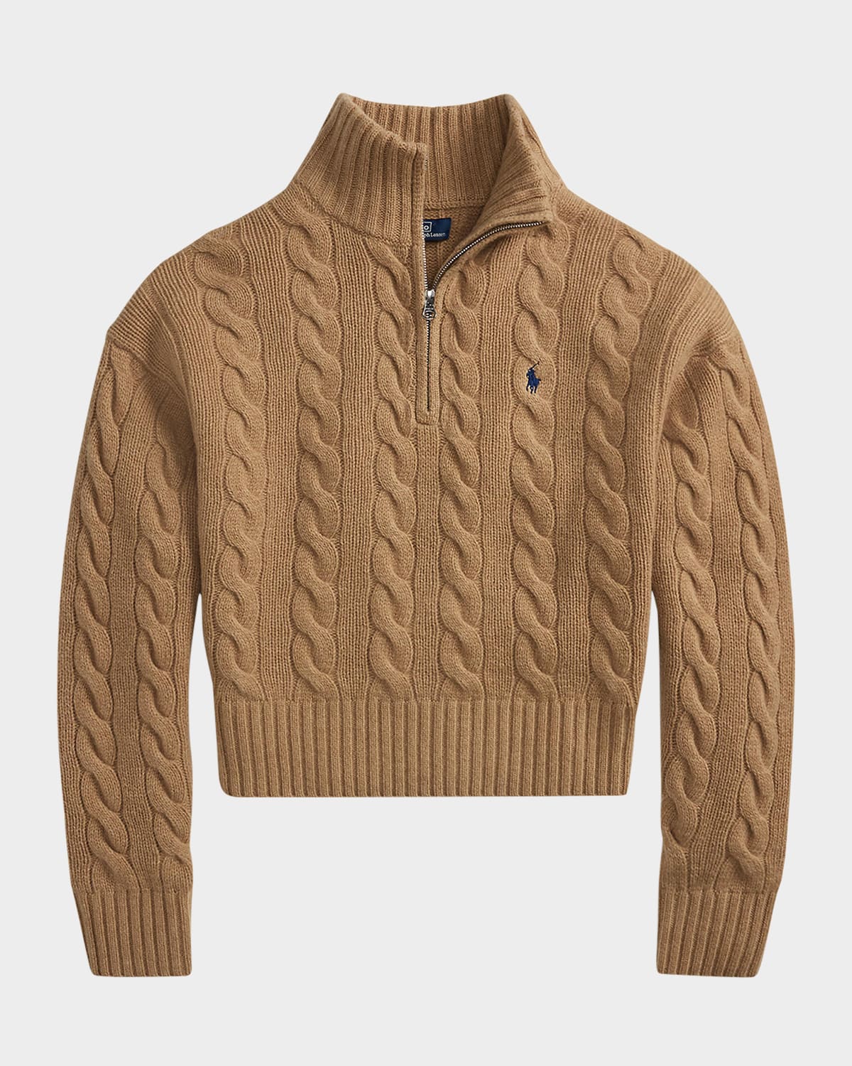Made in a luxurious Italian wool and cashmere blend, this Polo Ralph Lauren sweater is crafted in a soft, chunky knit with the signature embroidered pony accent on the chest Stand collar; half zip front Drop shoulders Long sleeves Relaxed fit Pullover style Wool/cashmere Imported