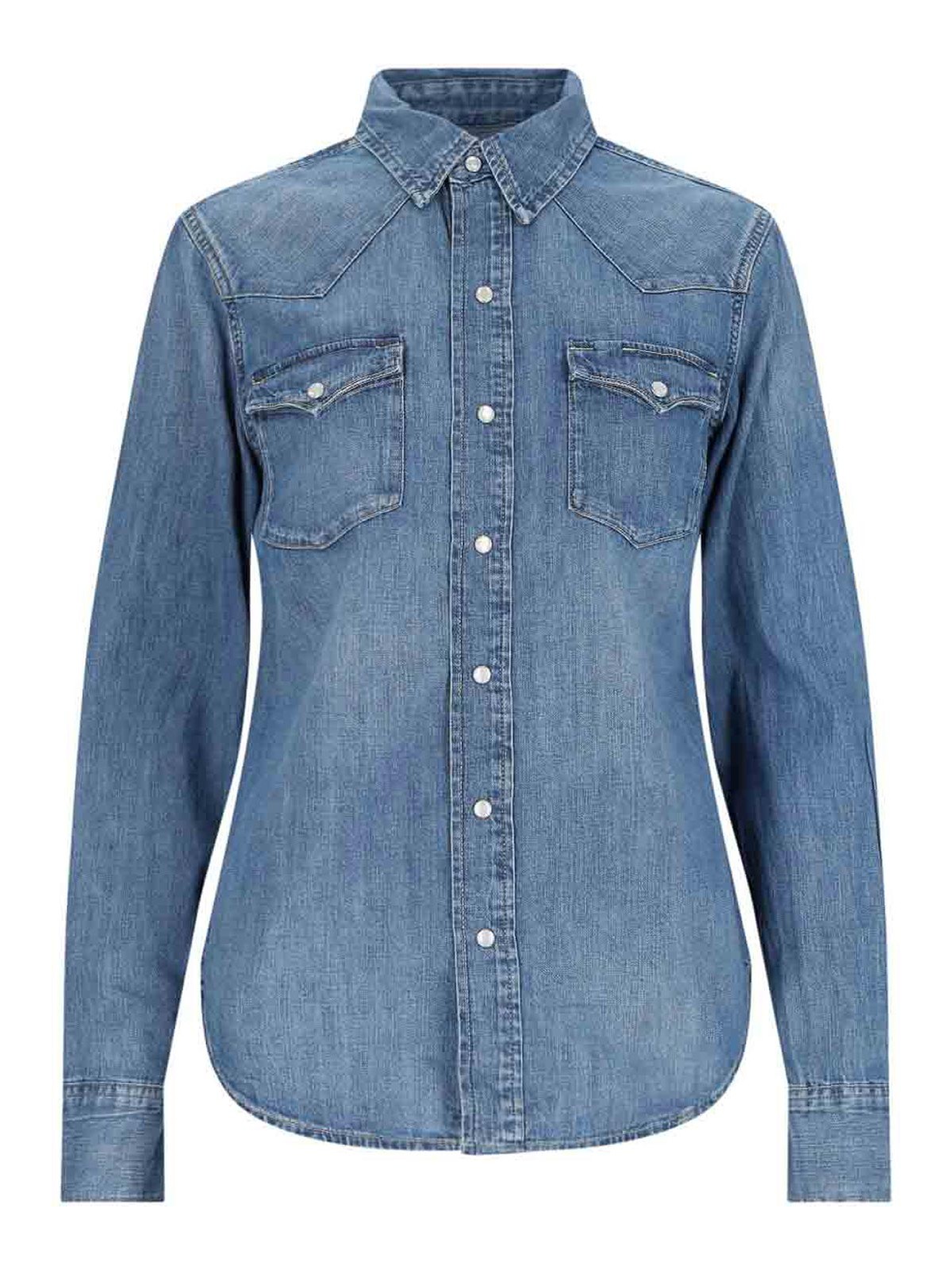 Chemise en jean Polo Ralph Lauren Blu Ustured Classic Colletto Bottoni Deux poches Patta Petta Poitrine Bottoni Poignets Curvo Lights