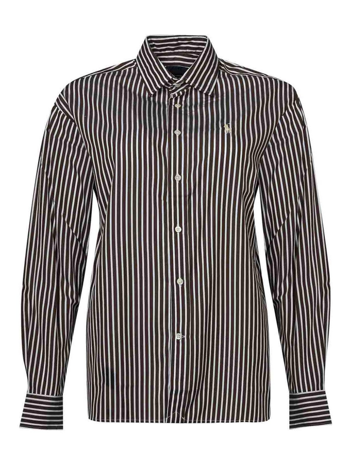 Col à rayures verticales en coton, manches longues, poignets boutonnés