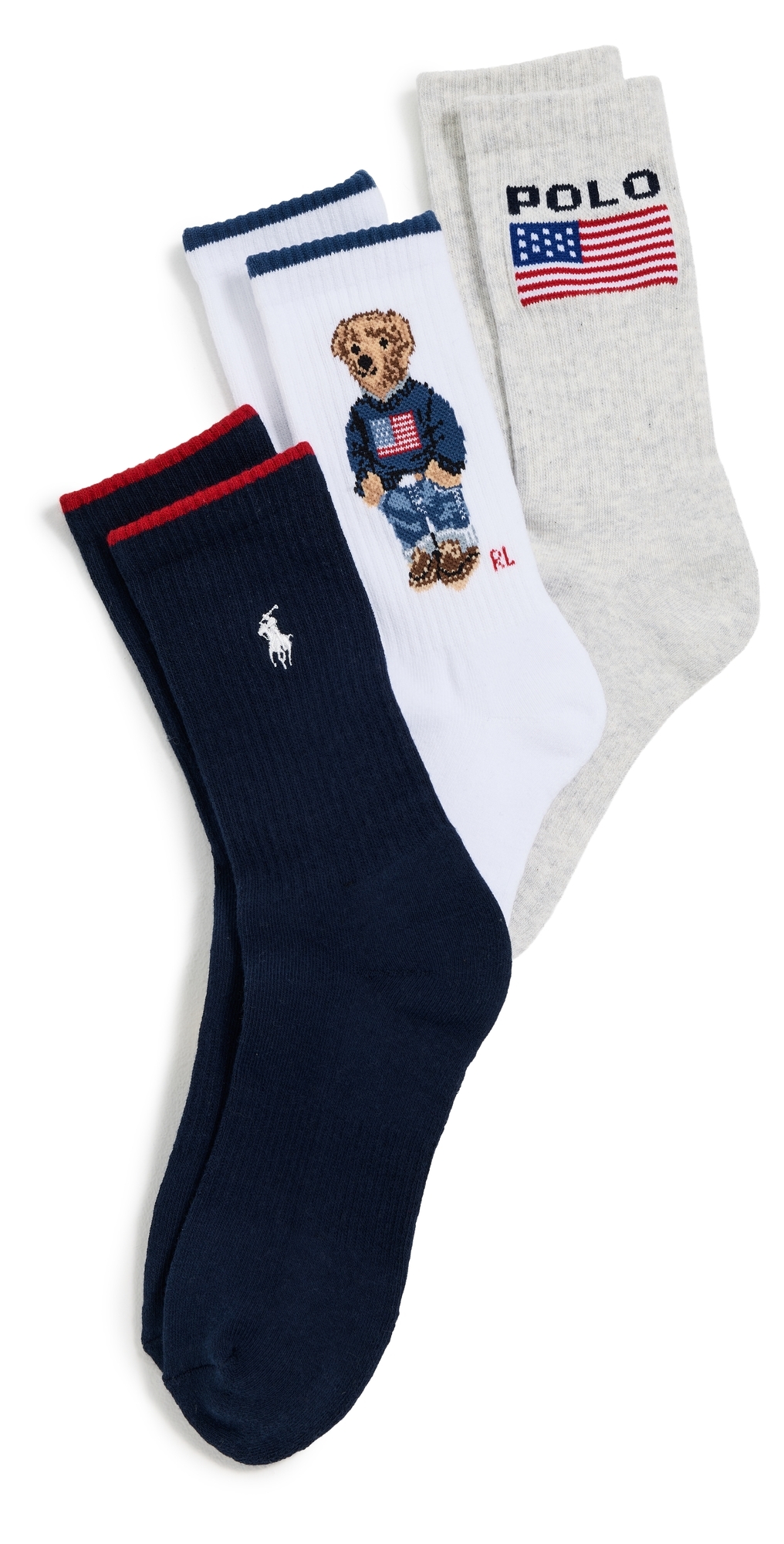 Flag Bear Socks 3 Pack Oatmeal/Navy/White Assorted