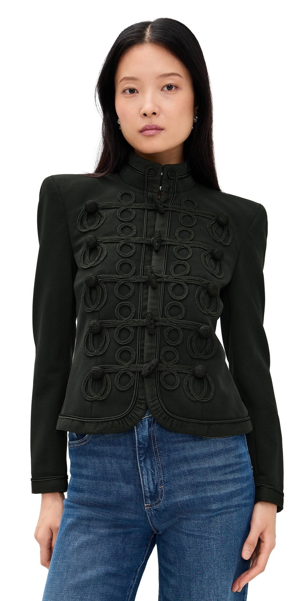 Fabric: Mid-weight stretch suiting. Padded shoulders. Tonal embroidery at front. Collared neck. Long sleeves. Button placket. Shell: 94% polyester/6% elastane. Lined. Lining: 100% polyester. Wash cold. Imported, China. Measurements: Measurements from size 2 Length: 20.75in / 53.0cm, from shoulder