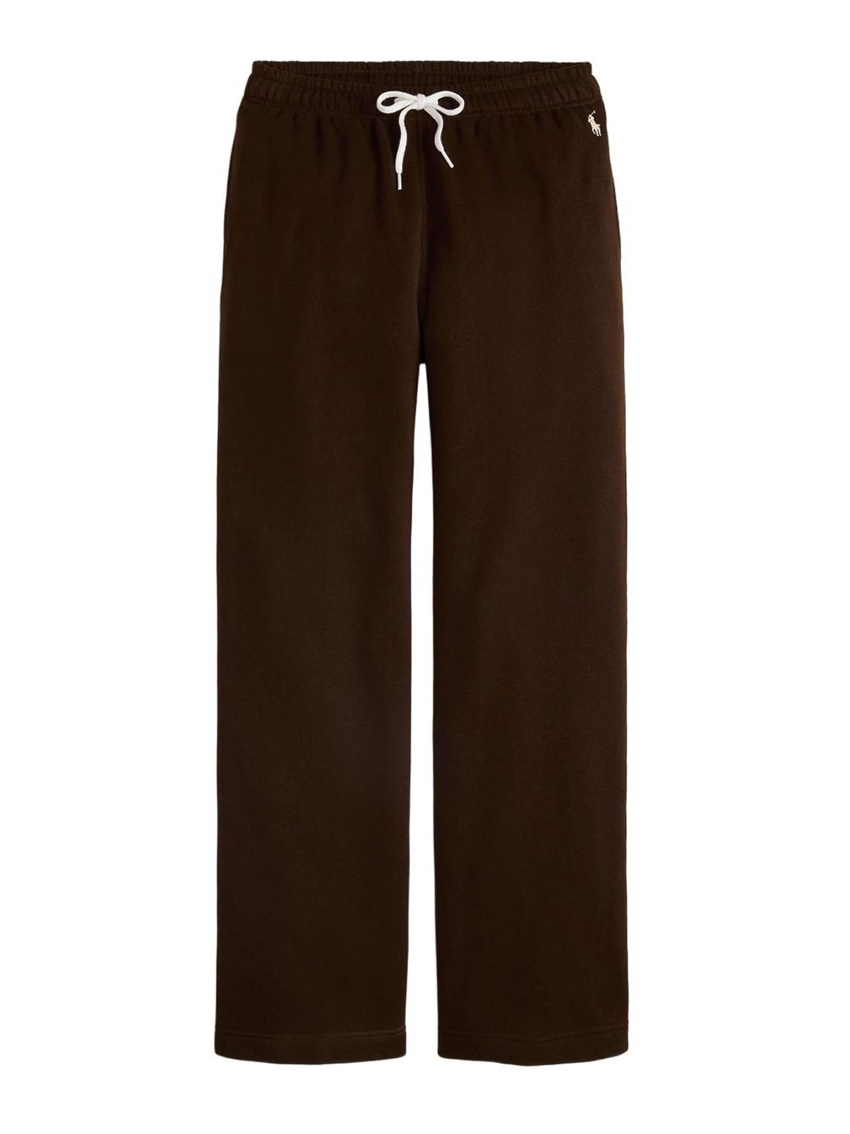 Ceinture côtelée marron terre avec cordon de serrage, poches coulissantes sur les côtés, motif polo emblématique, poney