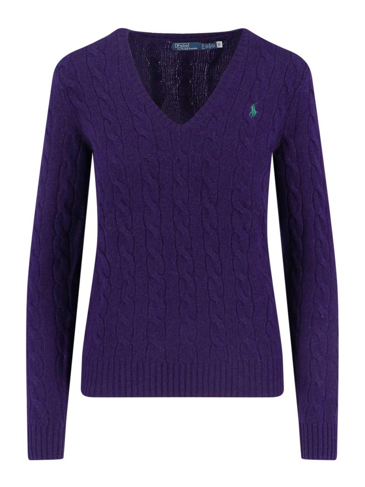 Pull Tracce Logo Polo Ralph Lauren en mélange Viola Viola Viole Volk Logo Poitrine Costine Finitions bord droit