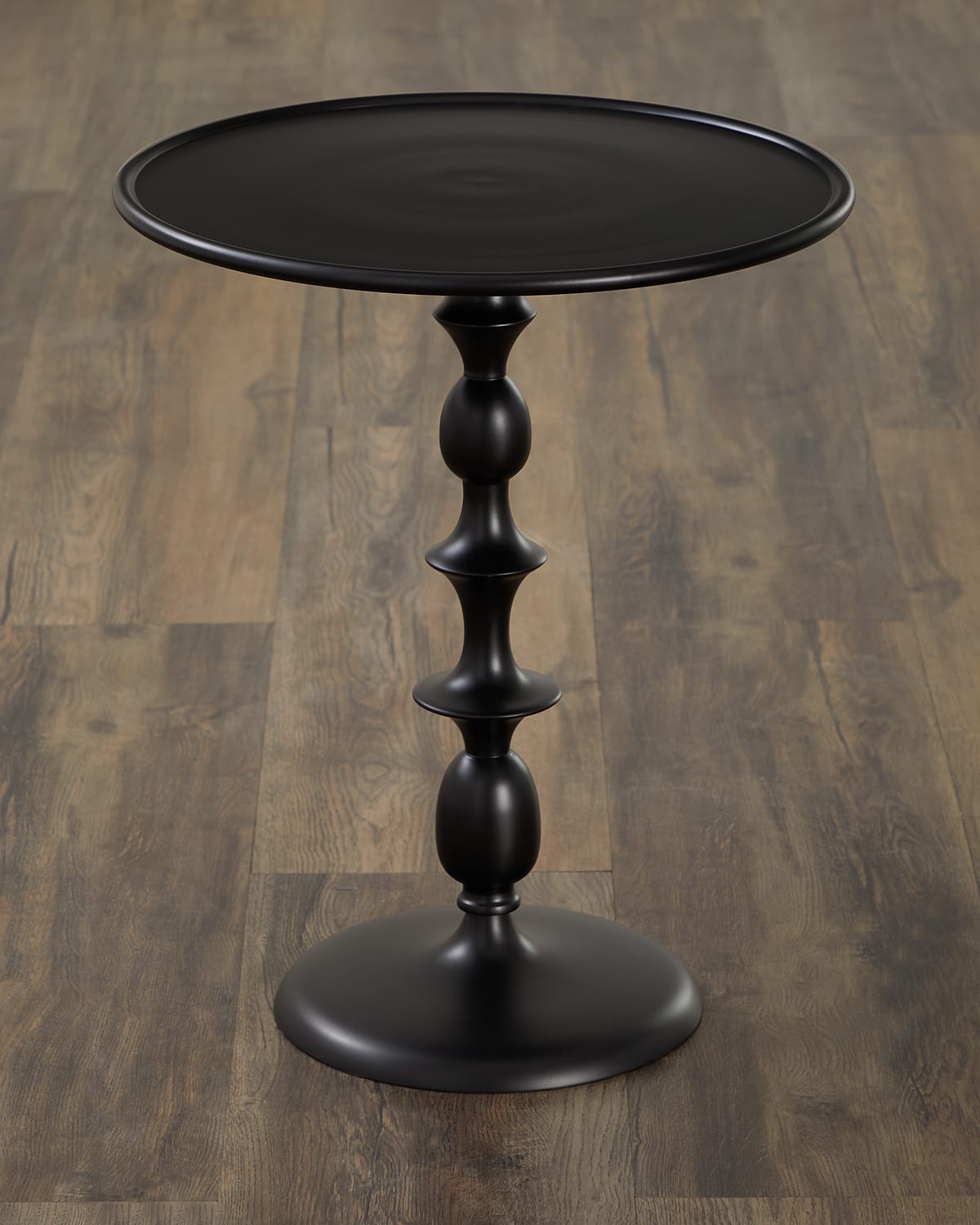 Bring modern style to any room with the sleek sophistication of this classic side table from Polspotten. This widely popular accent piece puts a contemporary twist on traditional décor with its simple lines and cast aluminum construction. Its turned base will effortlessly pair with a variety of different styles, bringing elegance and tastefulness to your living space. Handcrafted of cast aluminum Overall, approx. 18"Dia. x 21.5"T Light assembly required Finished back Weight, 16.5 lbs Imported Boxed weight, approximately 35.0 lbs