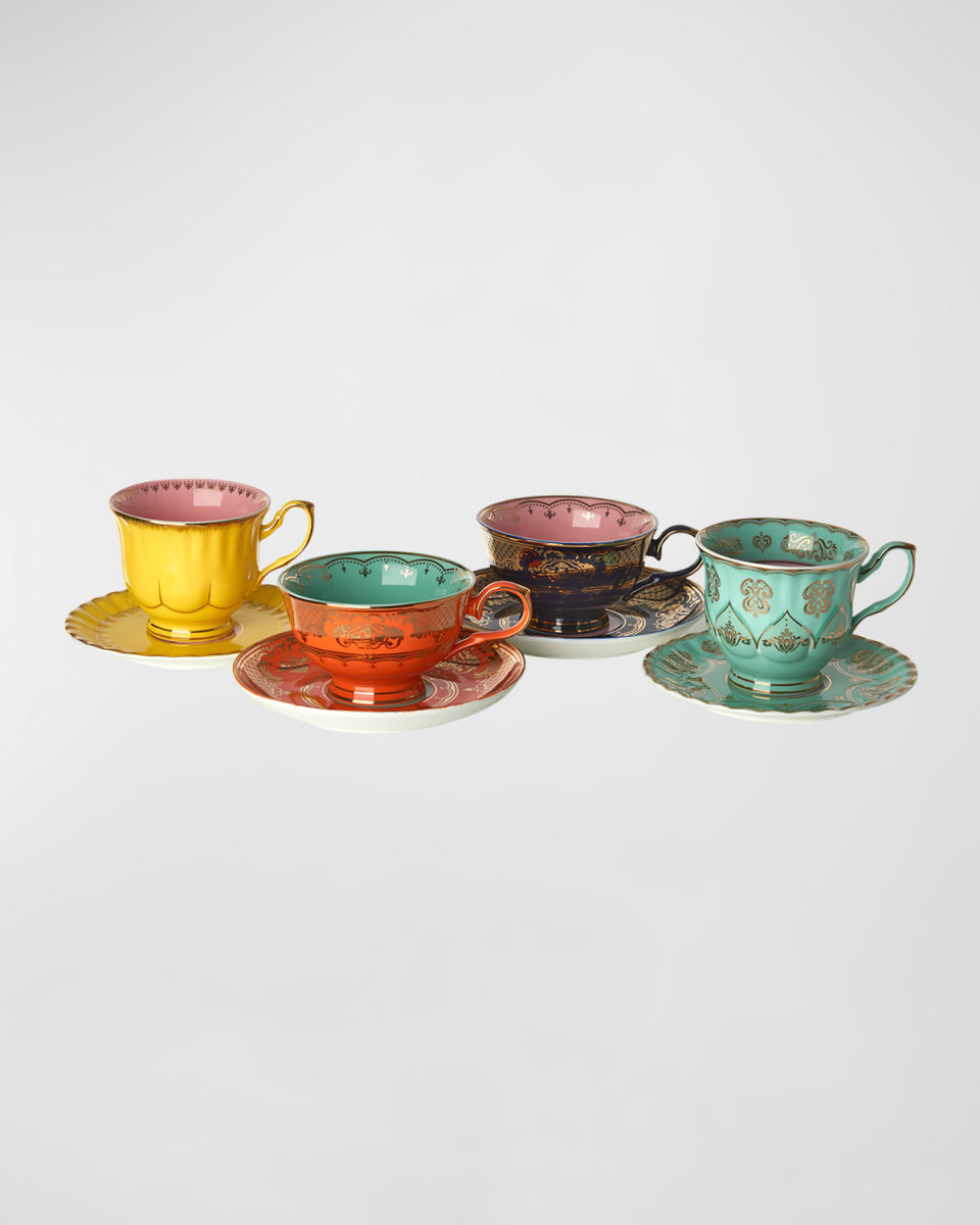 In the POLSPOTTEN family of things, Grandpa is the one who loves to juggle. His age may make him jittery, but not a drop is spilled. Here's a sophisticated gentleman who waltzes through life and pours love into each moment of the day. You'll often find him dancing with a string of doting relatives in his wake. The cups and saucers he spurred may be made of the same precious porcelain, nobody can match Grandpa's golden top. In tearooms, suites, and pantries around the world, he may be greeted as the grandest of old friends. But for us, he's just Grandpa. Includes four cups and four saucers in two different styles Handcrafted of porcelain Capacity, approx. 7.4 oz. each Style 1: cup, 5"W x 4"D x 2.4"T; saucer, 6"Dia. x 0.7"T Style 2: cup, 4.4"W x 3.5"D x 3"T; saucer, 5.7"Dia. x 0.5"T Item Weight (Lbs.): 2.9 Hand wash Set of four Imported