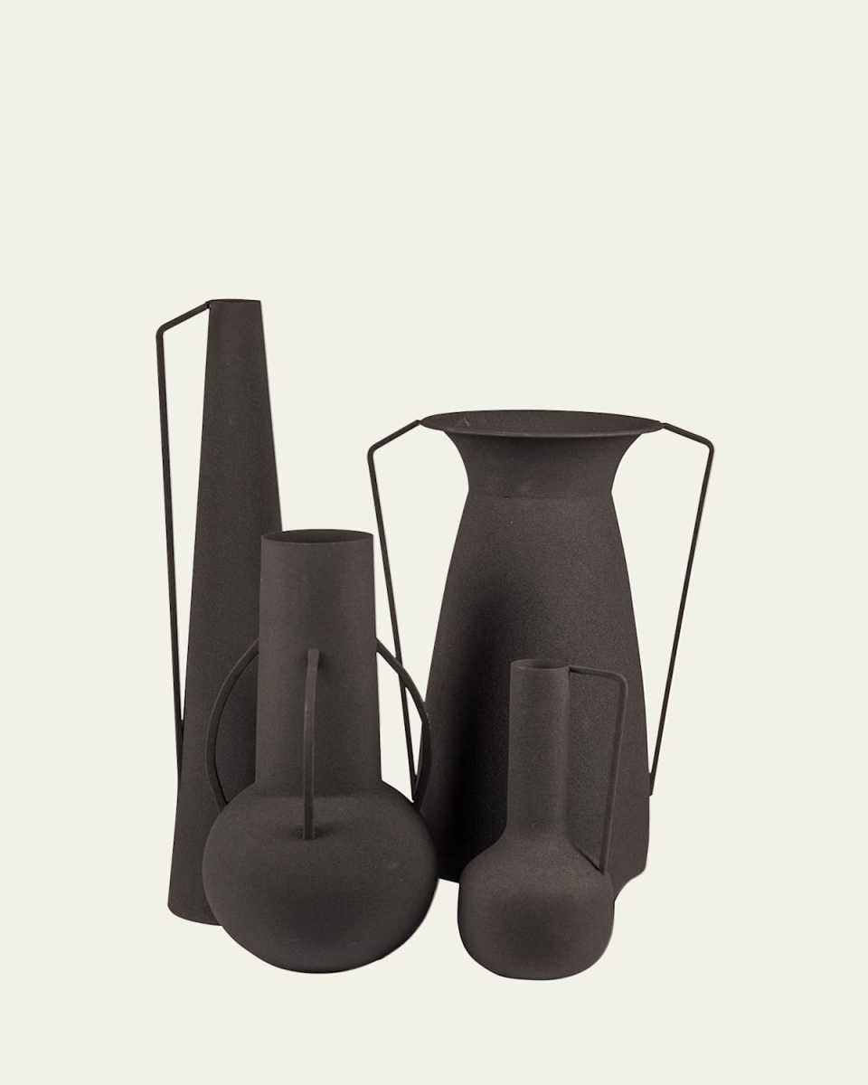 The Roman Vases are as authentic and as beautiful as you'd expect to find in ancient Roman times. Powdercoated in soothing contemporary hues and finished with a unique texture - the perfect balance of oldworld charm and contemporary comfort. Handcrafted of iron Small, 4"Dia. x 9"T Medium, 6"Dia. x 14"T Large, 7"Dia. x 16"T ExtraLarge, 4"Dia. x 20"T Item Weight (Lbs.): 7.5 Wipe clean Set of four Imported
