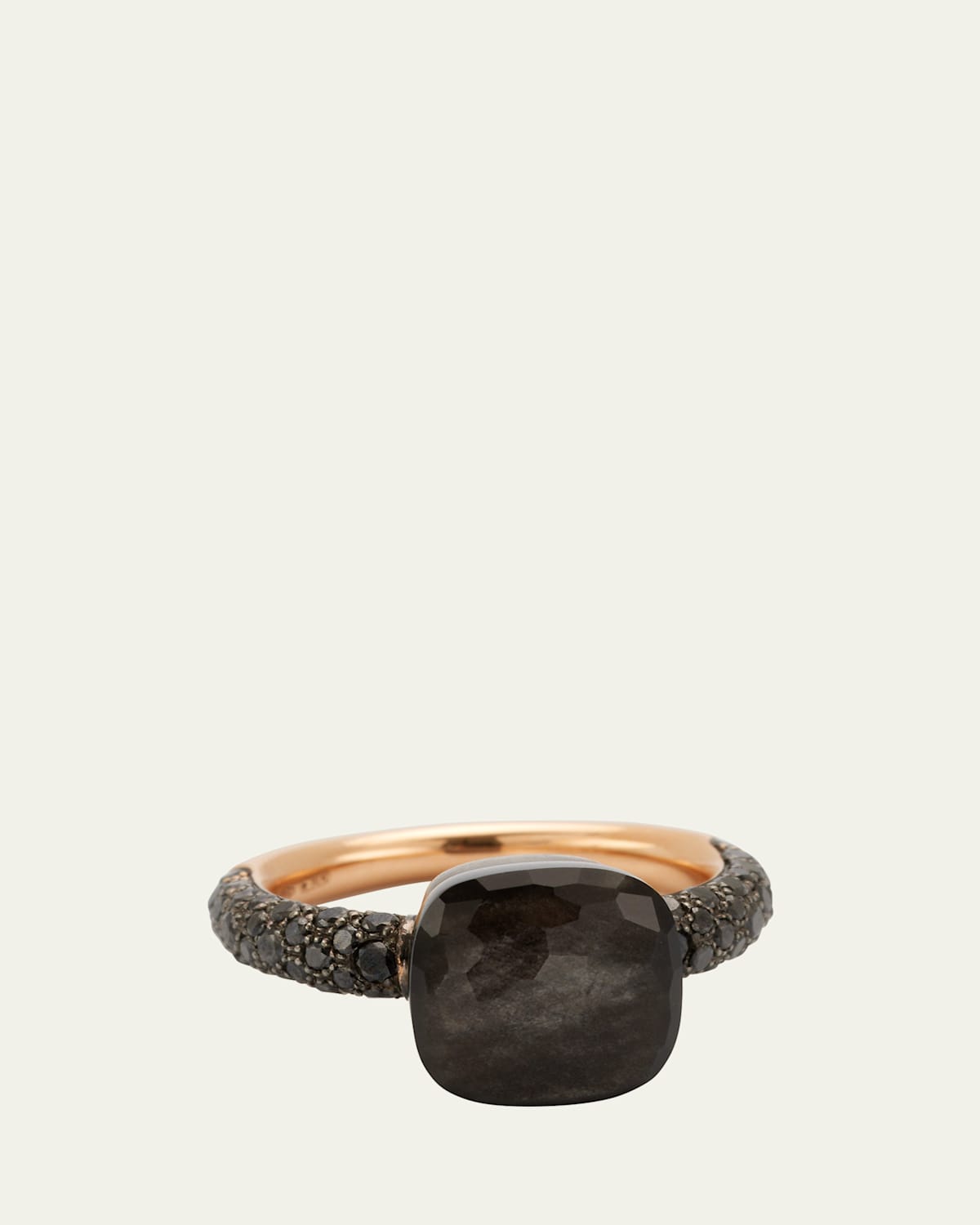 NUDO classic ring from Pomellato Polished 18karat rose gold and titanium Obsidian station with 58 black diamonds 6.30 total obsidian carat weight 0.72 total diamond carat weight Made in Italy