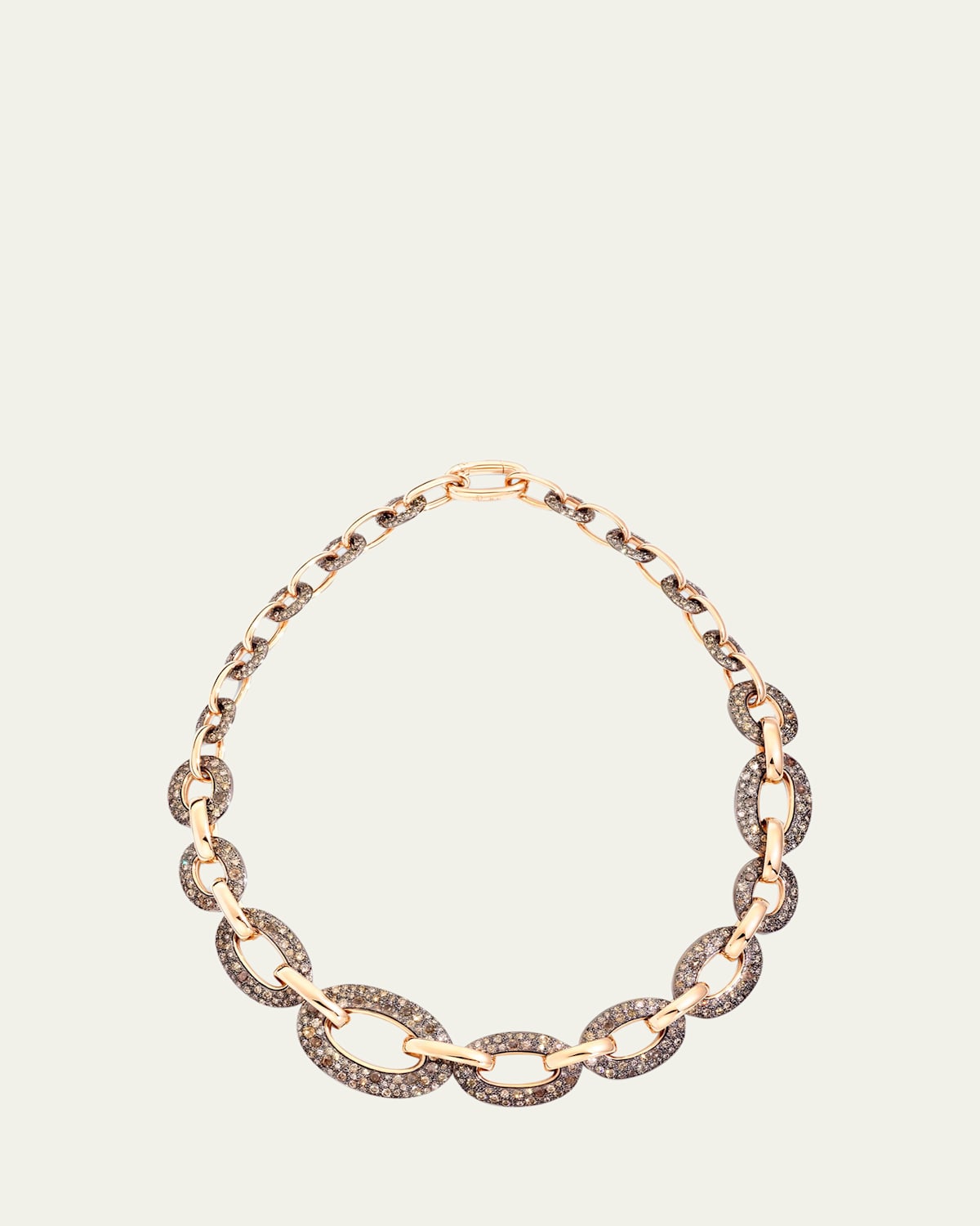 Pomellato necklace from the Tango Collection. Polished 18karat rose gold as hardware. Multisize links with brown diamonds. 9.50 total diamond carat weight. Foldover clasp. Approx. 16.5"L.