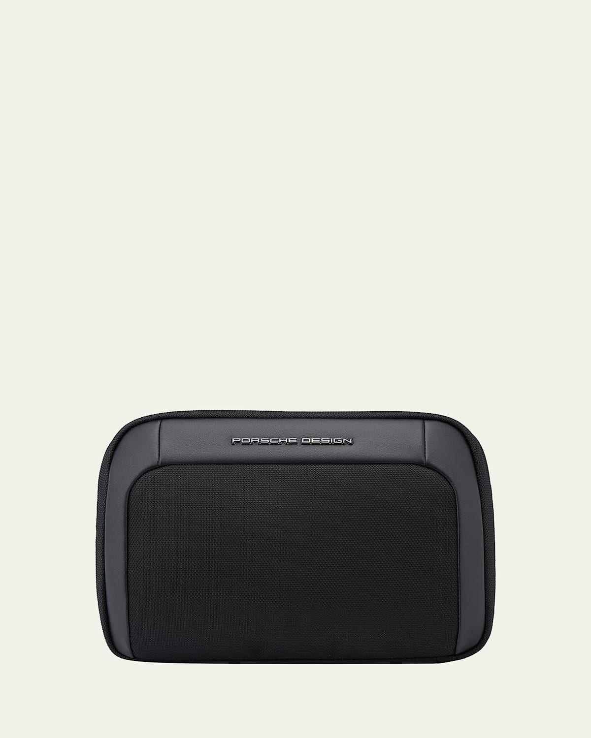 Porsche Design washbag in waterrepellent nylon and smooth leather Divided interior with organizer; opens fully Interior with additional zippered divider Integrated hook on back Approx. 10.5"L Item Weight (Lbs.): 0.6 Lining: Polyester Trim: Leather Imported