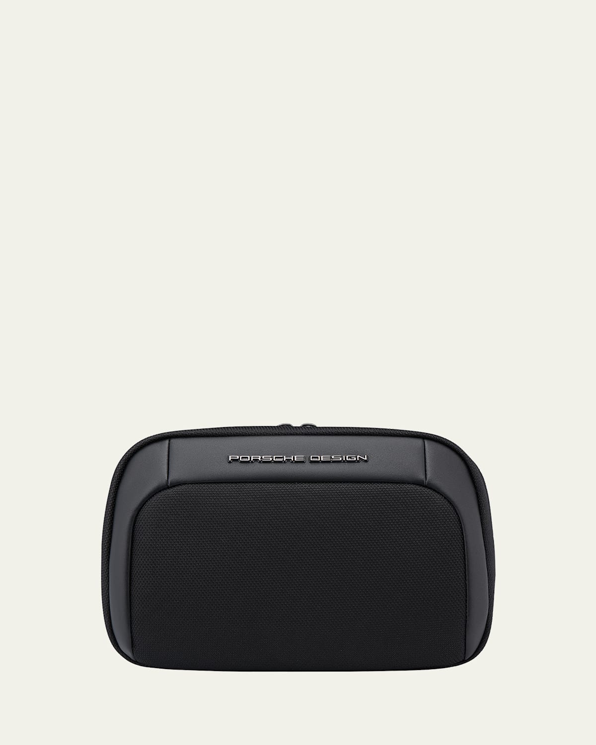 Compact, lightweight designer washbag featuring a modern design Waterrepellent Crafted of nylon/polyamide and leather Approx. 9"W x 4"D x 6"T Item Weight (Lbs.): 0.6 Lining: Polyester Trim: Leather Imported