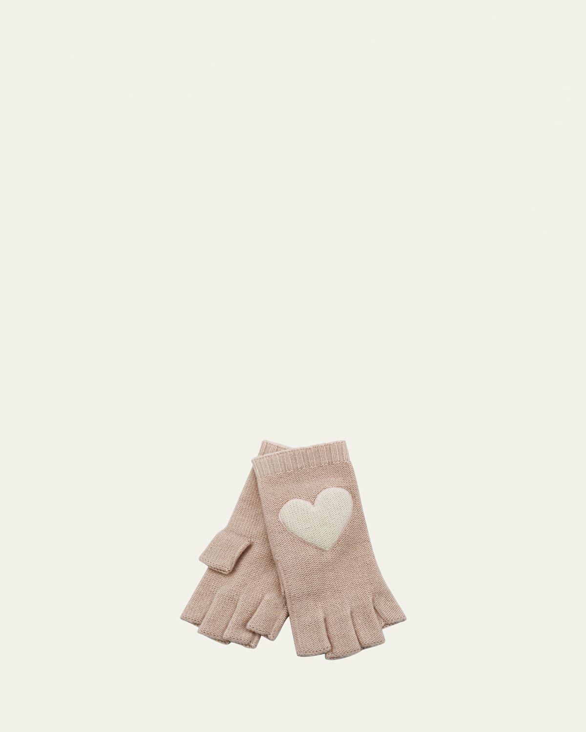 Portolano jerseyknit fingerless gloves. Features embroidered heart on back of hand. Ribbed cuff. Cashmere. Imported.