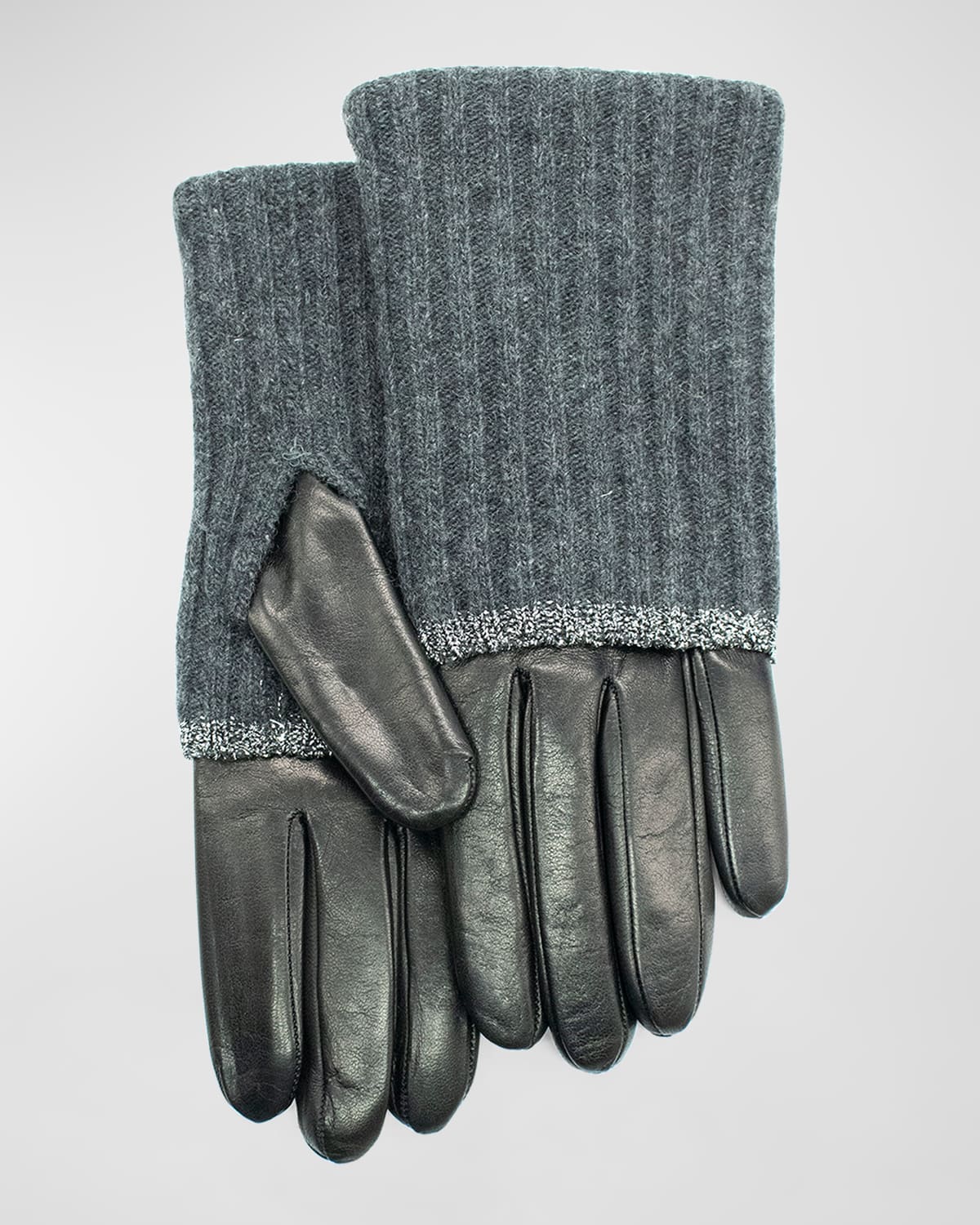 Nappa Leather & Ribbed Two-Tone Cashmere Gloves
