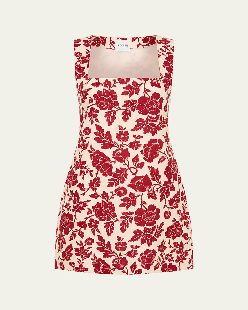 Posse "Alice" dress patterned with a romantic vintageinspired print Square neckline Sleeveless Side pockets Hem falls above the knee Aline silhouette Invisible side zipper Linen Lining: Cotton Imported