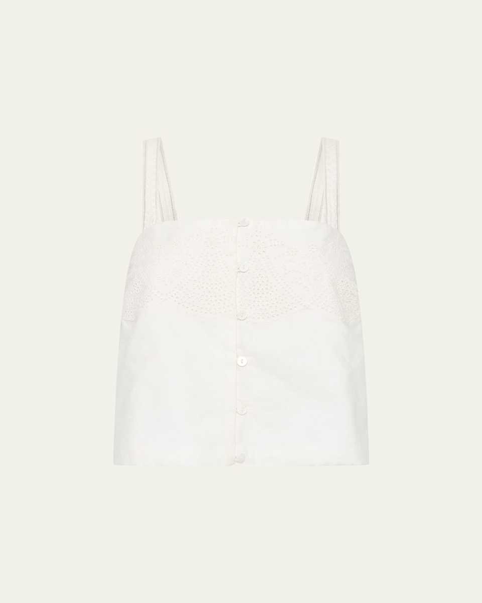 Posse "Beryl" cami with embroidery throughout Square neckline Adjustable straps Classic fit Hem sits at the hip Buttonfront Cotton Lining: Cotton Imported