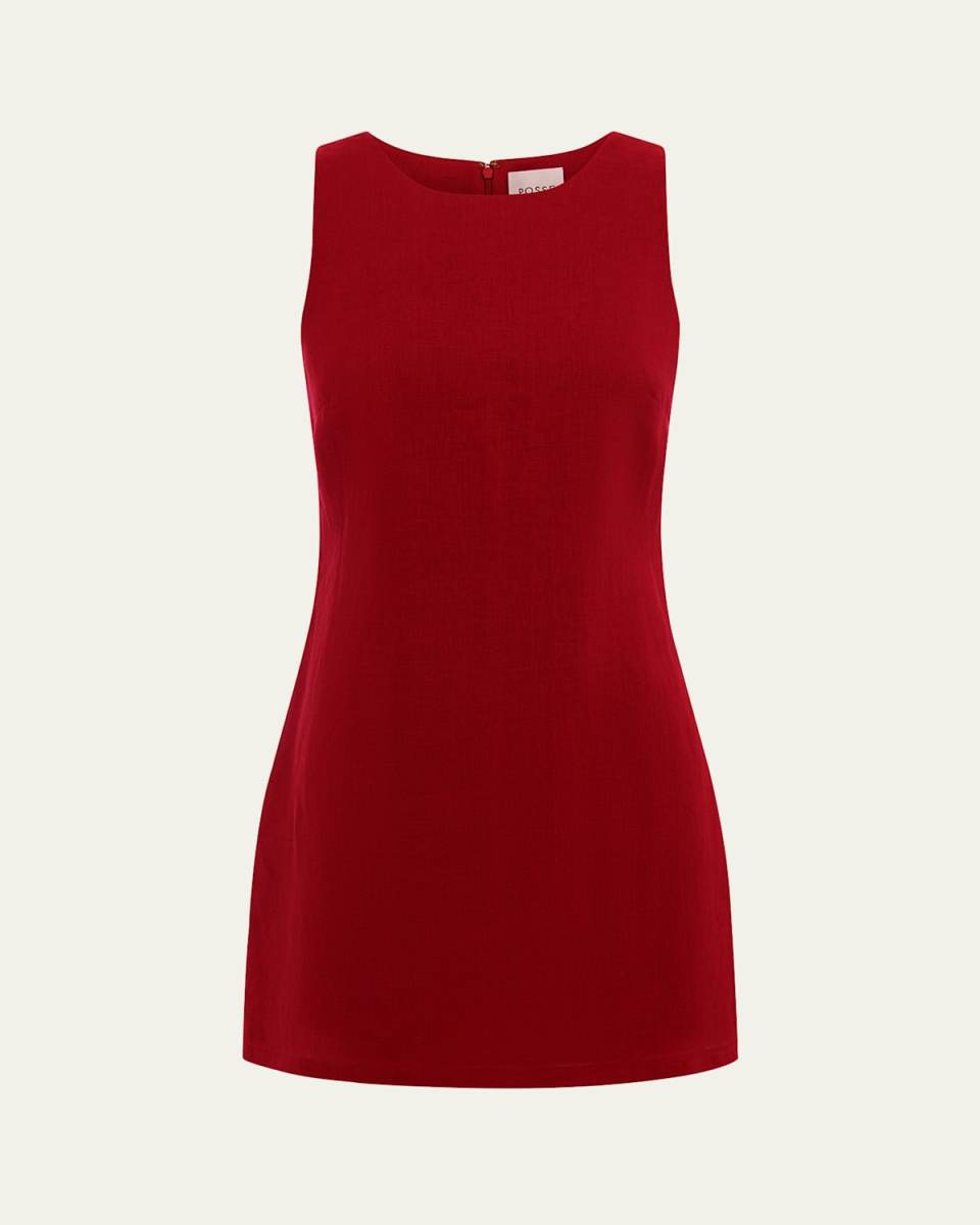 Posse "Ellen" classic dress cut from signature linen High neckline Sleeveless Side slip pockets Mini length Shift silhouette Centerback zip closure Linen Lining: Linen Hand wash or dry clean Imported