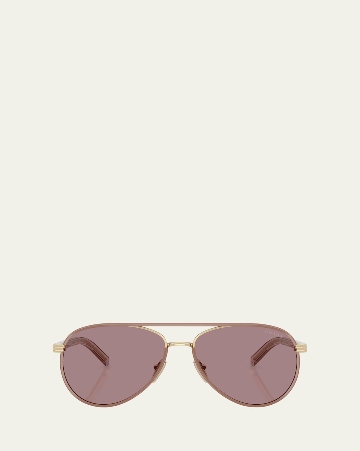 Prada aviator sunglasses with steel frames Gradient lenses Left lens logo script Adjustable nose pads Tapered arms Spot clean 100% UVA/UVB protection Made in Italy