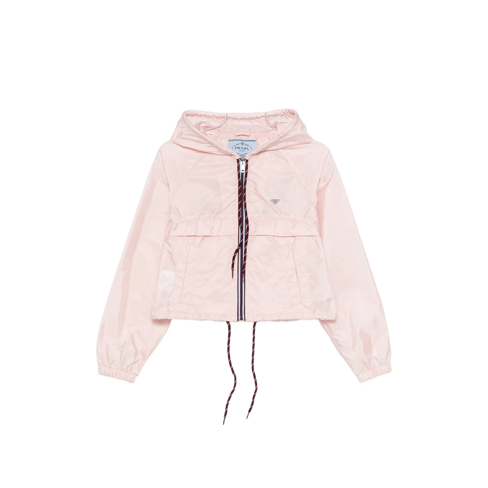 light pink drawstring hood long sleeves zip fastening