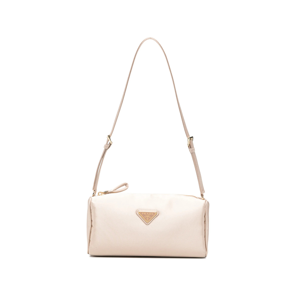 beige top zip fastening single shoulder strap triangular logo plaque gold-tone hardware This piece comes complete with a protective dust bag.