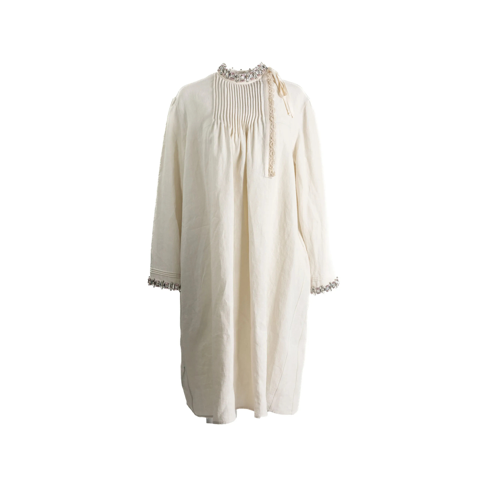 Pleated Embellished-neck Dress