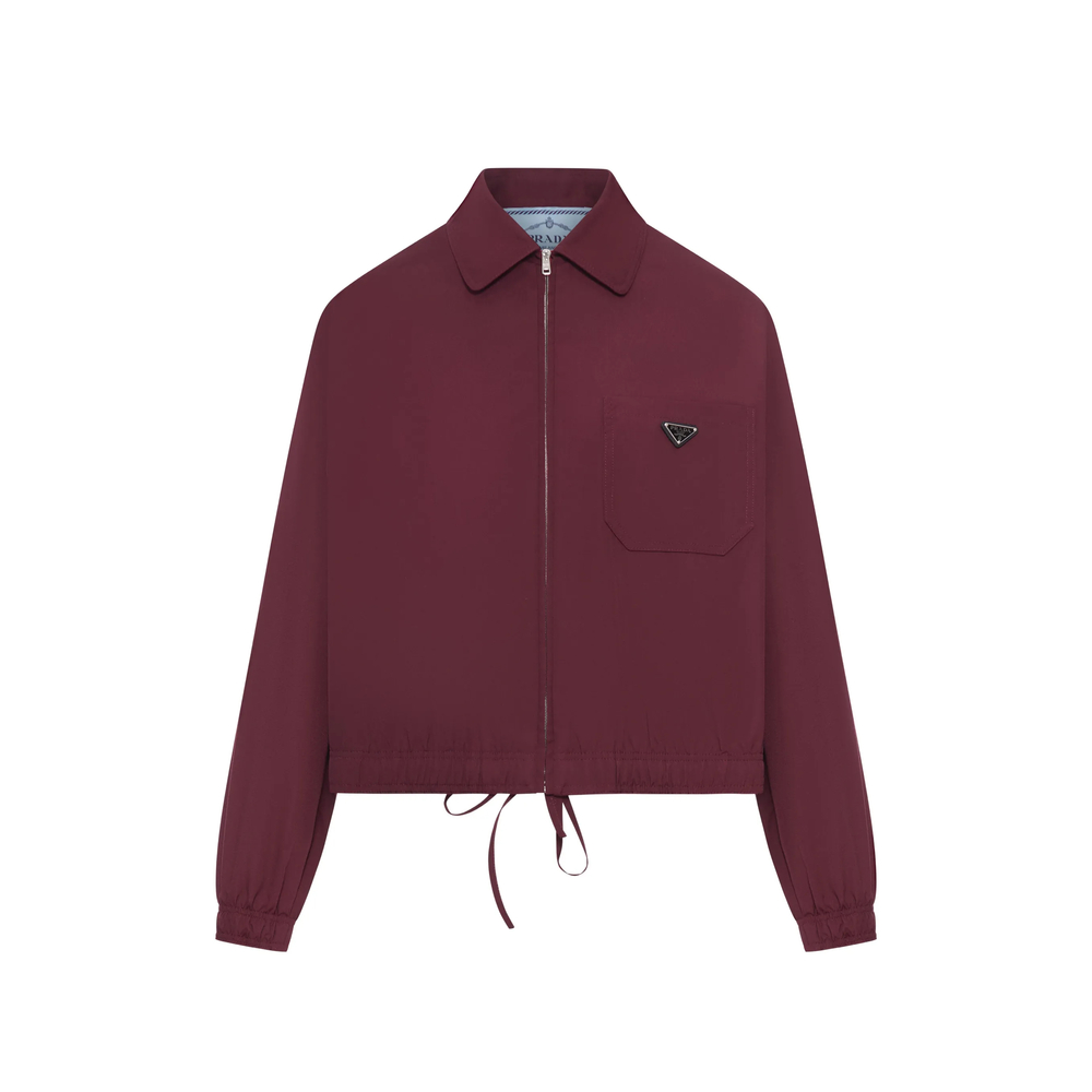 red chest-pocket zip-up gathered cuffs drawstring hem triangular logo plaque