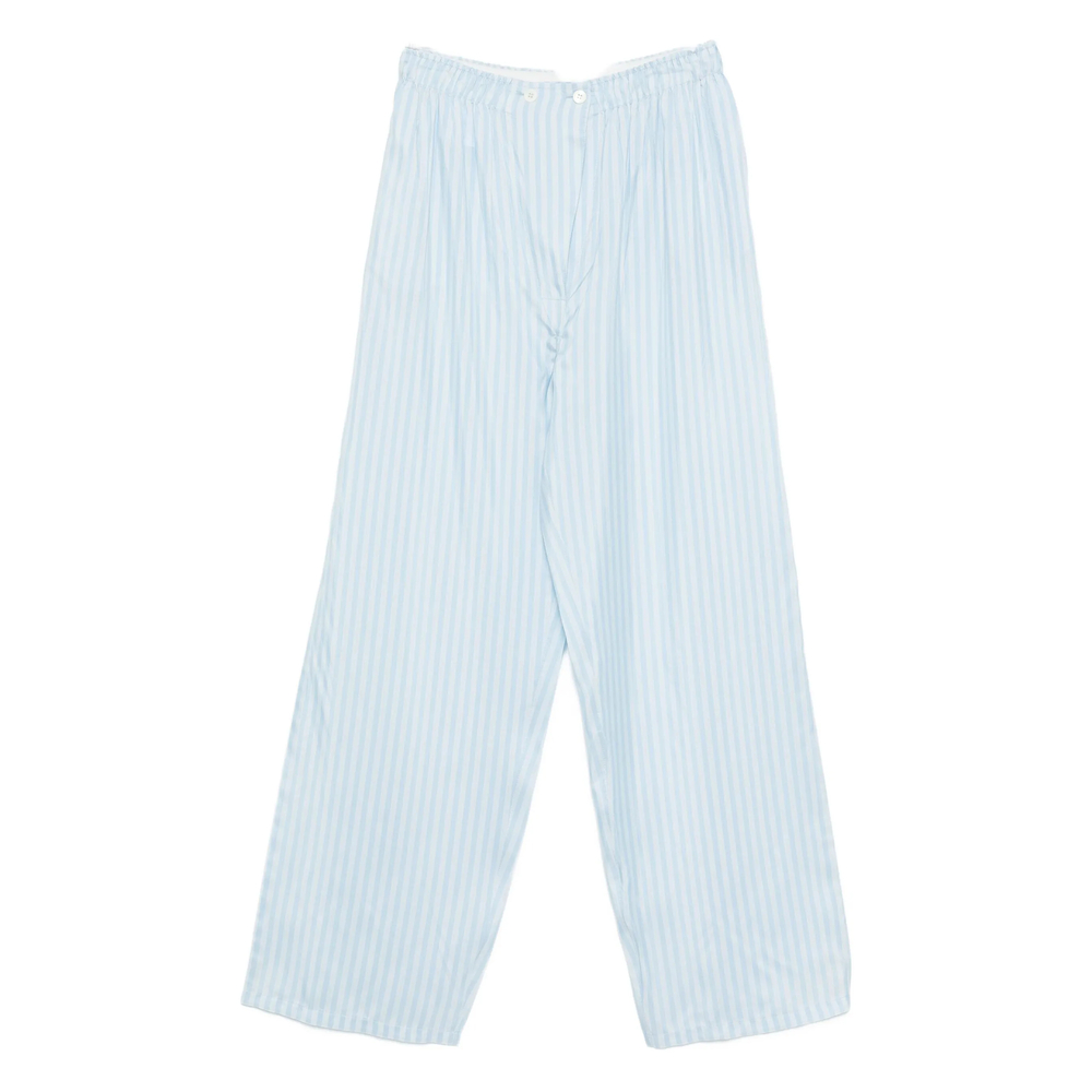light blue striped inseam pockets back welt pockets elasticised waist front button closure