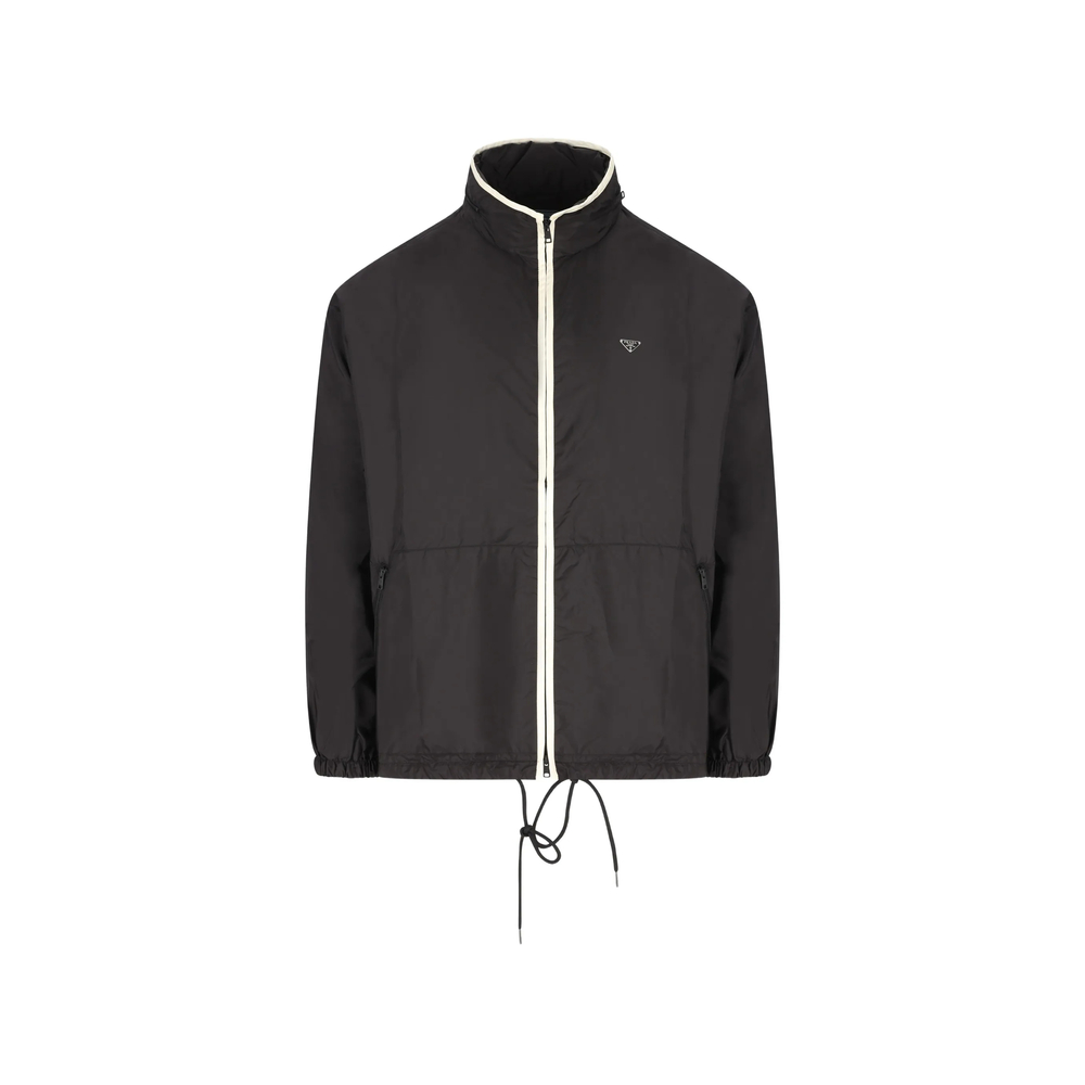 black zip fastening high collar logo detail drawstring hem elasticated cuffs