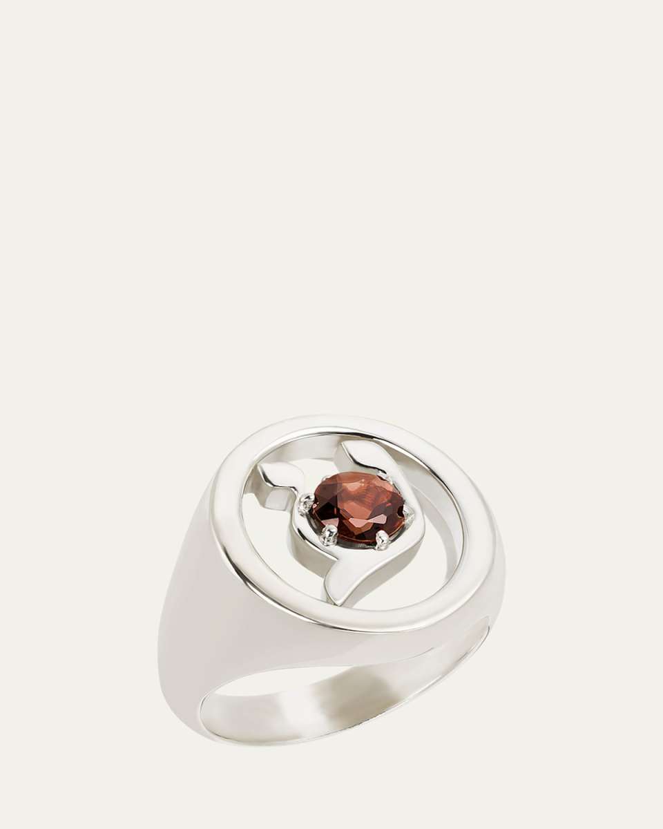 Procaccia Jewelry signet ring carved in an oval chevalier setting 18karat solid gold Featuring a trustworthy browneyed roundcut brown sapphire Letter ayn signet ring (aa) "enlightened scepter, you combine masculine and feminine in conjugal love, always looking for a soul mate" [r. Procaccia] Through ayn the constellation of Capricorn came into creation. Ayn in Hebrew means: "eye" and invites us to reach an internal and spiritual form of vision and see the world in a new way. Made in USA
